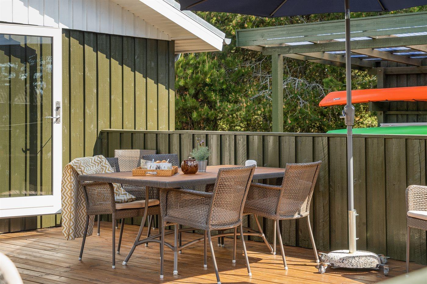 Die Ferienunterkunft liegt auf einem 1300 m² großen Naturgrundstück. Die Entfernung zum Meer beträgt 300 m. Die nächste Einkaufsmöglichkeit liegt 1000 m entfernt. Es steht ein 45 m² Terrassenareal zur Verfügung. Schaukel. Sandkasten. Es steht ein Carport zur Verfügung. Parkplatz auf dem Grundstück.