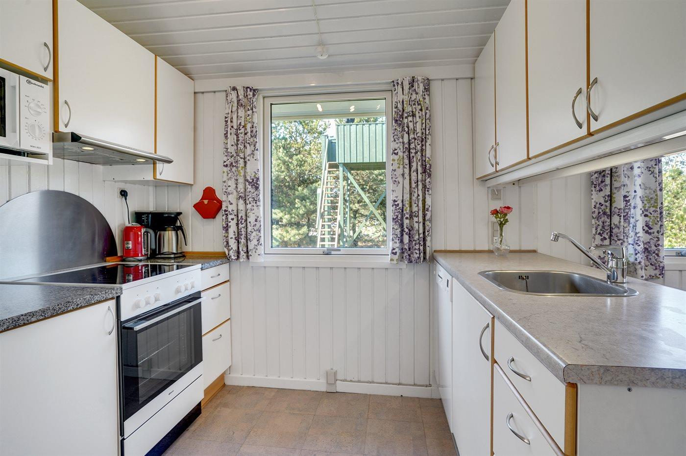 Die Küche ist mit Kühlschrank ausgestattet. Außerdem gibt es 4 Keramik-Kochfelder, Umluftofen, Mikrowelle sowie Geschirrspüler.