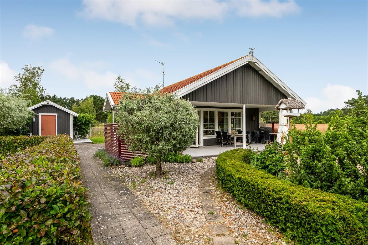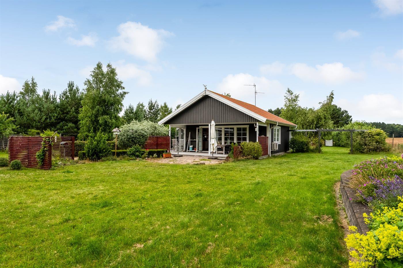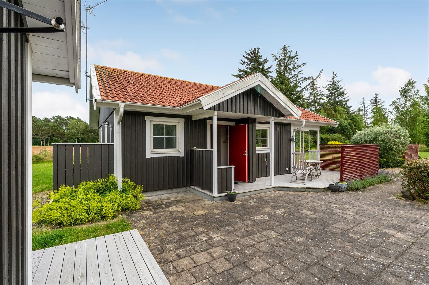 Dieses gepflegte Ferienhaus, 2011 gebaut, liegt auf einem 2.039 m² großen Grundstück auf einem Privatweg – in einem der besten Ferienhausgebiete von Vesterø und mit Blick auf offene landwirtschaftliche Flächen. Zum Haus gehört auch ein schönes Gästehaus mit zwei Schlafplätzen.