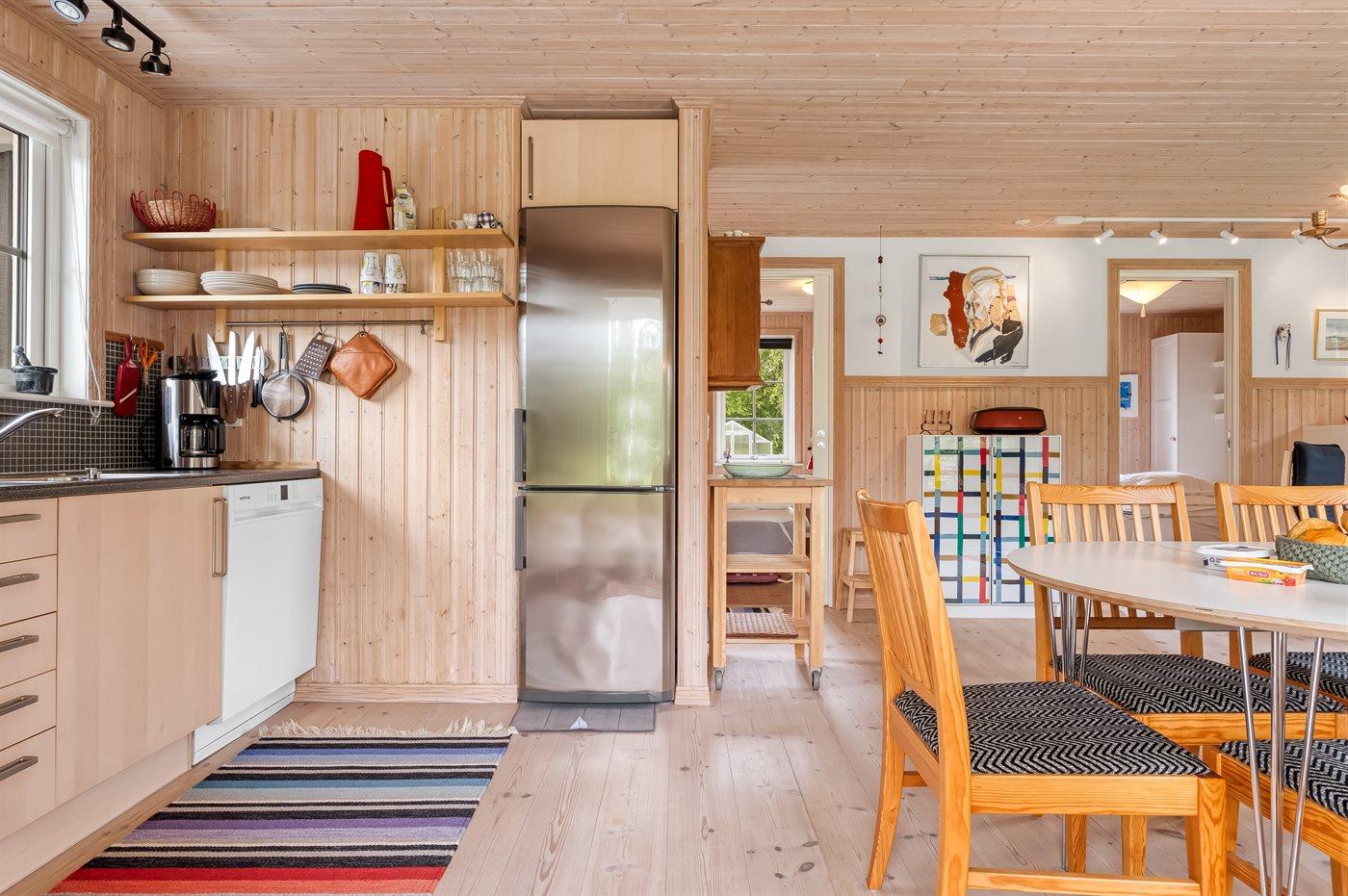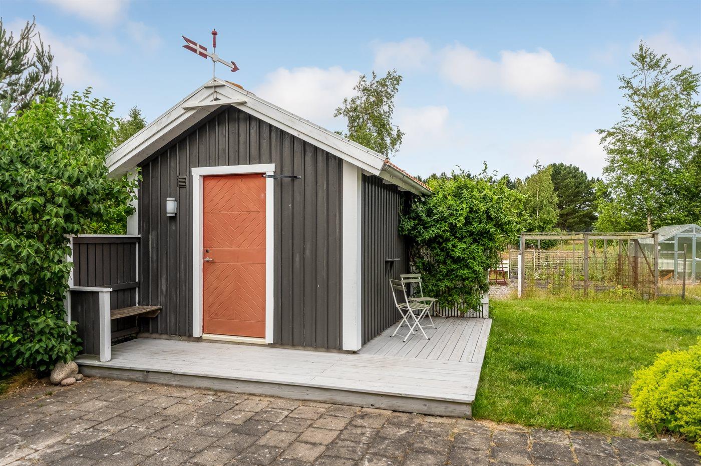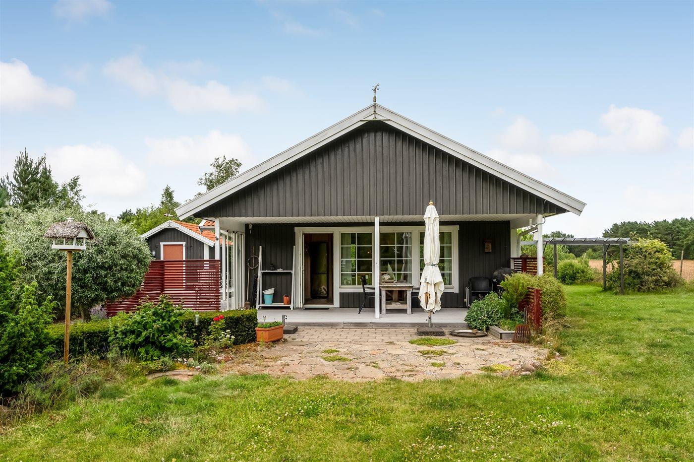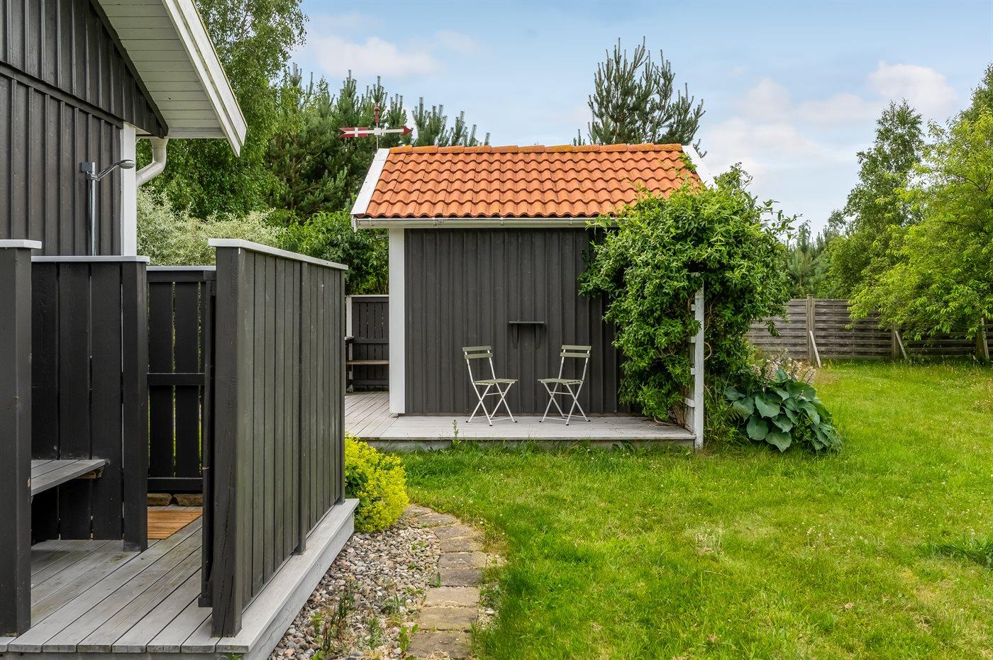 Dieses gepflegte Ferienhaus, 2011 gebaut, liegt auf einem 2.039 m² großen Grundstück auf einem Privatweg – in einem der besten Ferienhausgebiete von Vesterø und mit Blick auf offene landwirtschaftliche Flächen. Zum Haus gehört auch ein schönes Gästehaus mit zwei Schlafplätzen.