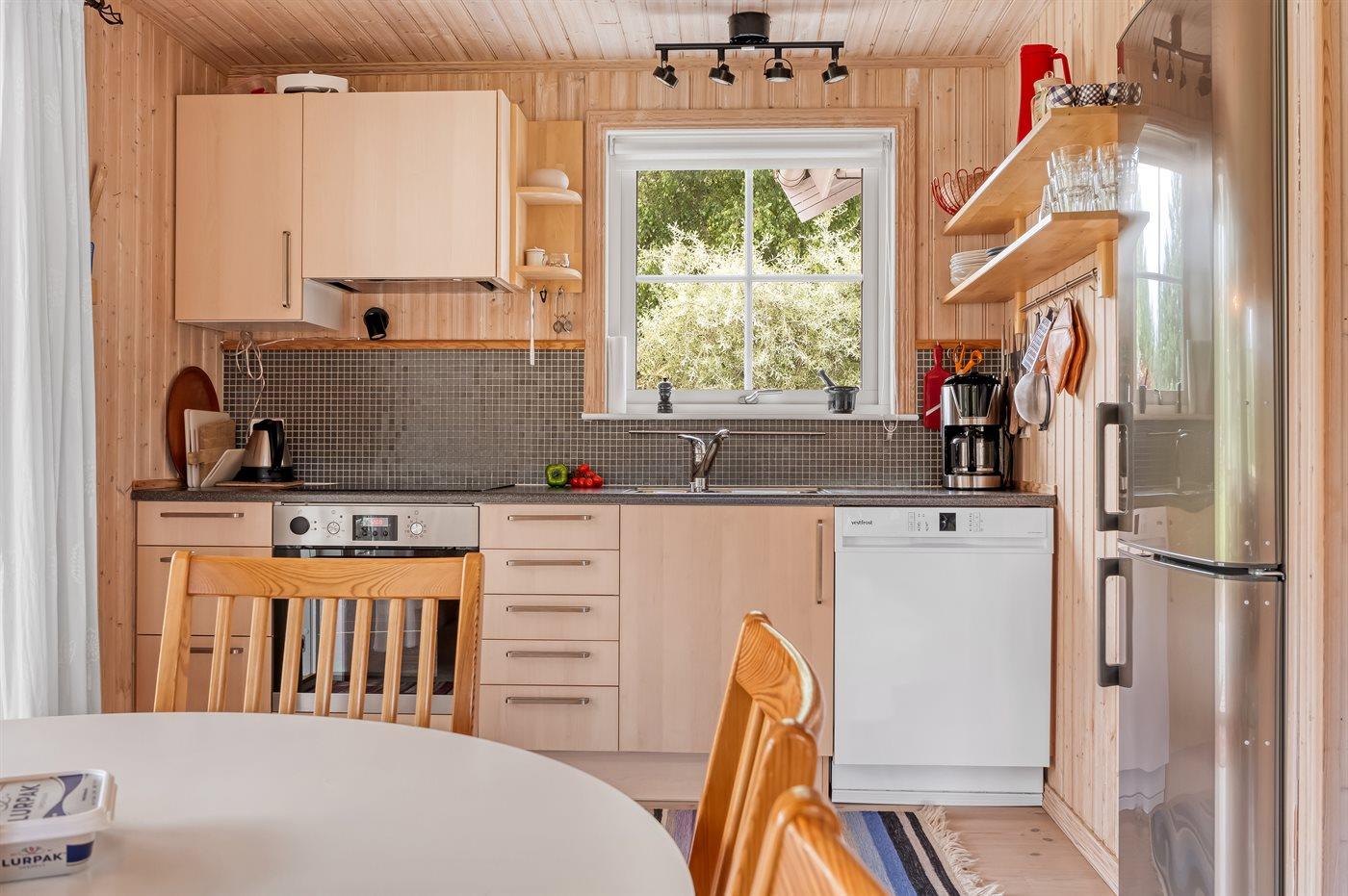 Ein Ferienhaus mit einem schönen Außenbereich, in einer Sackgasse im Feriengebiet Vesterø gelegen – nur einen kurzen Spaziergang vom fantastischen Badestrand, dem gemütlichen Hafenmilieu, der Fähre, Restaurants und Einkaufsmöglichkeiten entfernt.