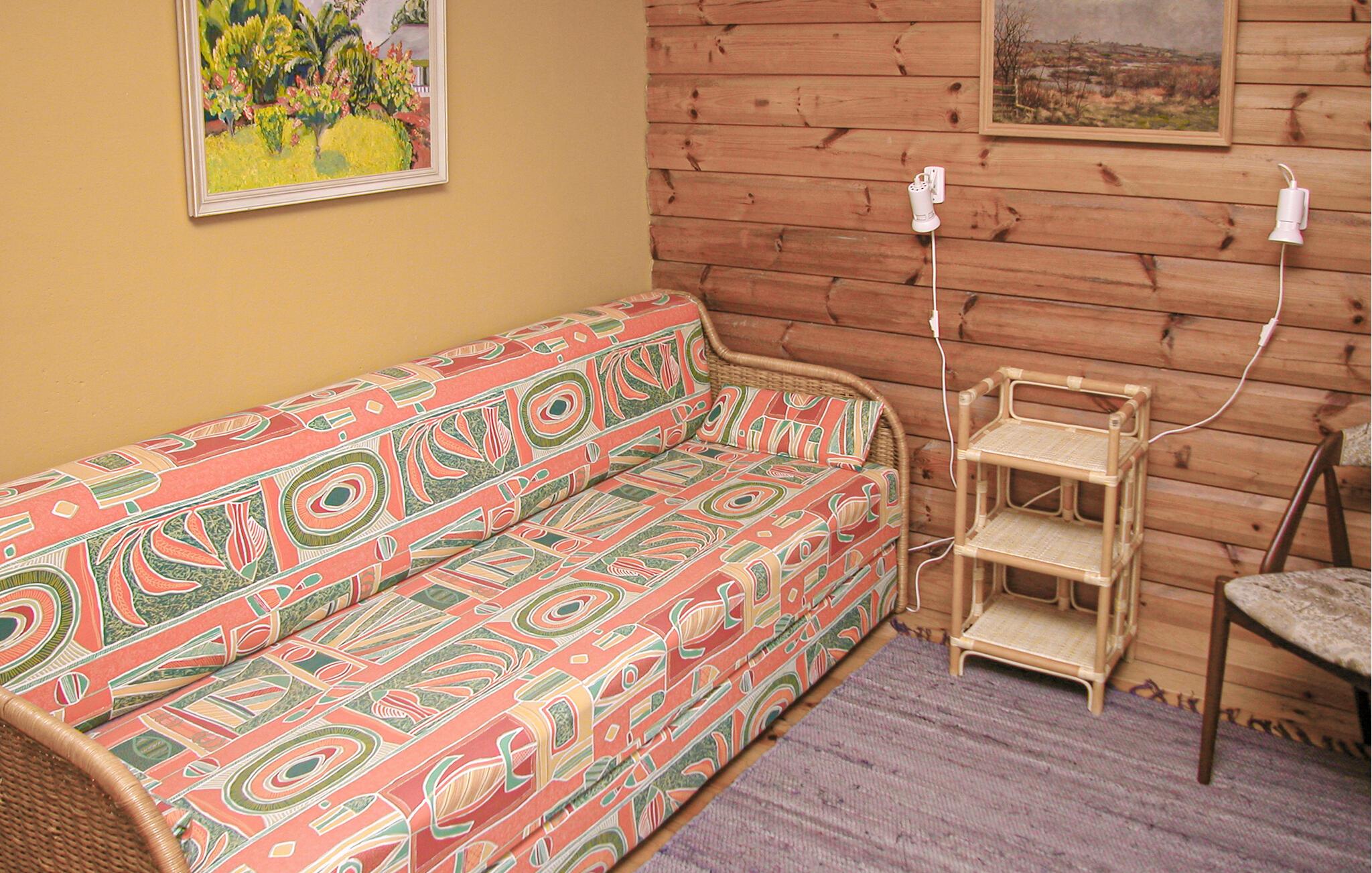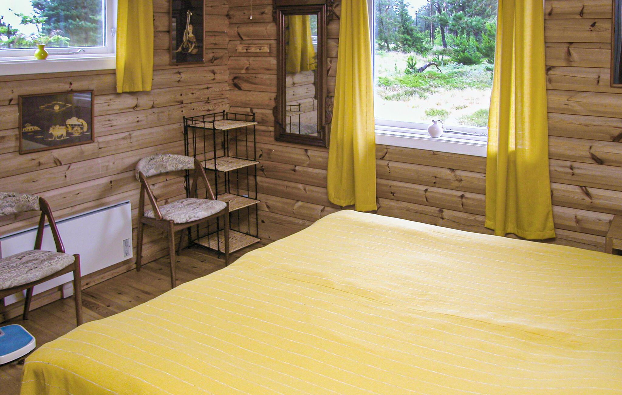 Das klassische Holzhaus in Landsende steht auf einem weitläufigen Grundstück, umgeben von Wiesen und Bäumen, die für Ruhe und Privatsphäre sorgen. Im Inneren empfängt Sie ein behaglicher Wohnbereich mit komfortablen Sofas, einem Kaminofen und großen Fenstern, die den Raum mit Tageslicht fluten. Lassen Sie an kühlen Abenden die wohlige Wärme des Feuers auf sich wirken und genießen Sie gemütliche Stunden. Der angrenzende Essbereich mit einem großzügigen Tisch lädt zu gemeinsamen Mahlzeiten und geselligen Momenten ein. Die kleine, praktische Küche bietet alles Nötige, um leckere Gerichte zuzubereiten, während Sie den Blick in die grüne Umgebung schweifen lassen.