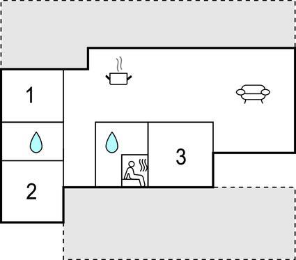 Badezimmer (nr. 1) - WC. Warmes und kaltes Wasser. Dusche