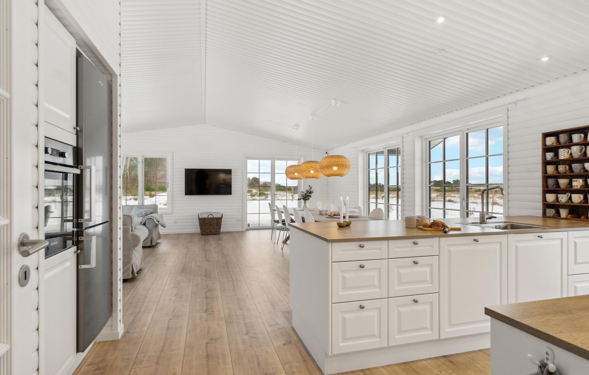 Willkommen in diesem rundum einladenden Ferienhaus, das mit Komfort und hochwertigen Lösungen begeistert. Die hellen Farben schaffen eine heimelige Atmosphäre in den einladenden Räumen mit bodentiefen Fenstern, die die Gemütlichkeit des Hauses mit dem Leben draußen verbinden. Machen Sie es sich mit einem guten Buch im Alkoven gemütlich, veranstalten Sie gemeinsame Kochabende oder grillen Sie an lauen Sommerabenden auf der großen Terrasse, während Ihre Kinder im Garten umhertoben.