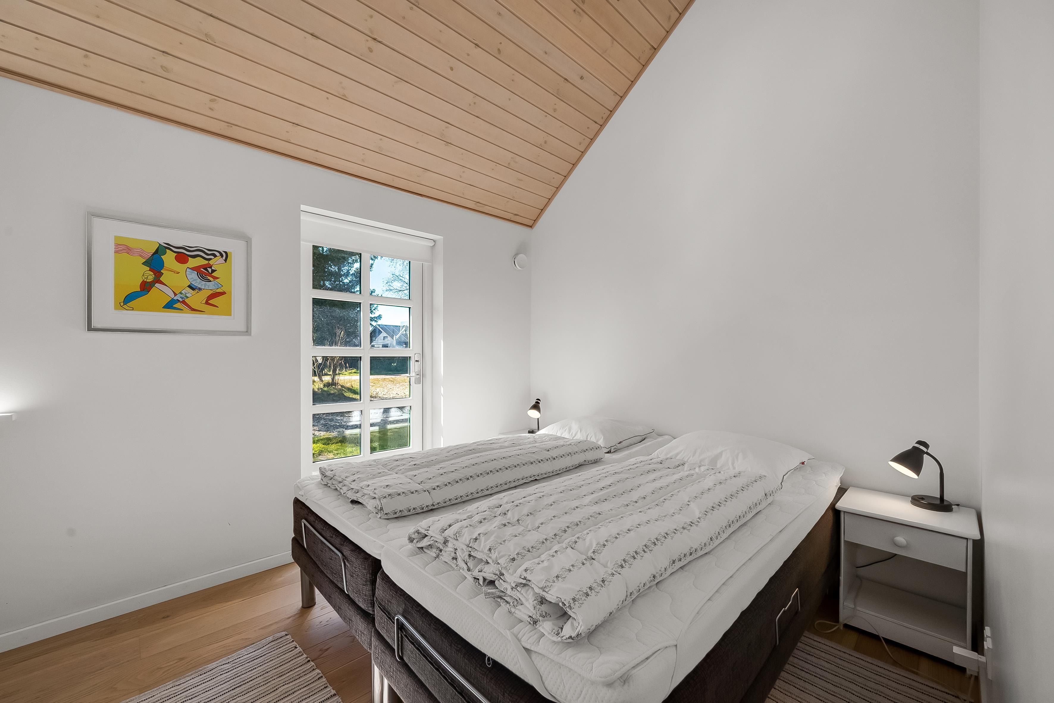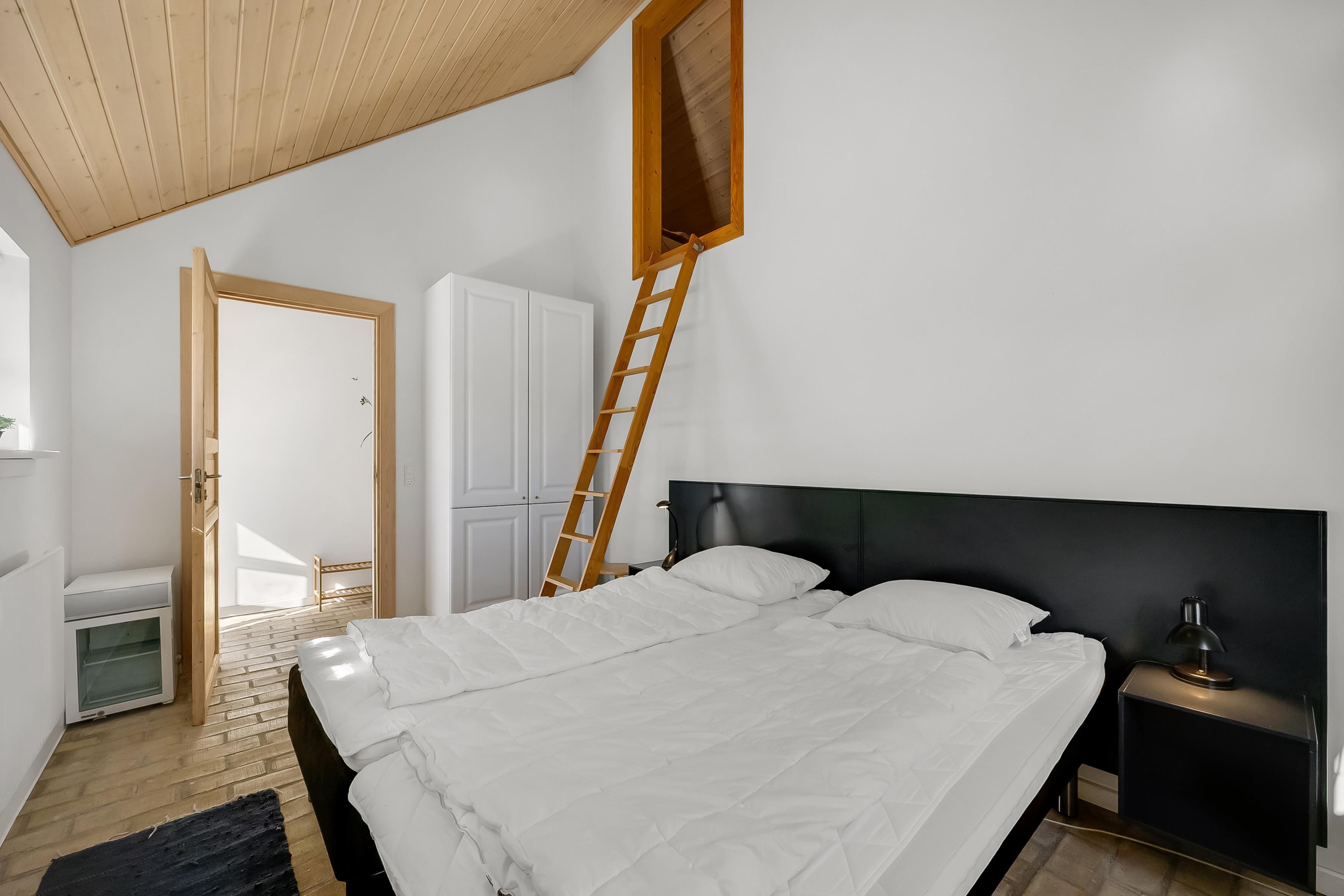 Das 120 m² große Ferienhaus bietet alles, was Sie für einen komfortablen Aufenthalt benötigen. Es verfügt über zwei Schlafzimmer mit Doppelbetten sowie einen gemütlichen Schlafboden (Hems), auf dem die jüngeren Familienmitglieder schlafen oder sich mit dem Tablet entspannen können.