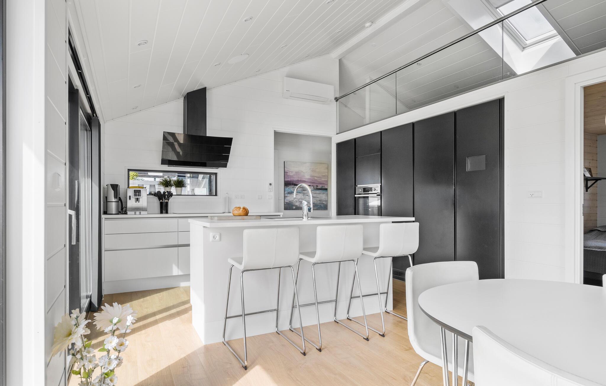 Willkommen am Loddenhøj Strand an der Genner Bucht im Süden Dänemarks. Lassen Sie sich vom charmanten Ambiente dieses Ferienhauses verzaubern, das eine gemütliche und einladende Atmosphäre schafft. Starten Sie Ihren Tag mit einem nahrhaften Frühstück in der offenen, gut ausgestatteten Küche und bereiten Sie hier später gemeinsam mit der Familie köstliche Mahlzeiten zu. Nutzen Sie den großzügigen Wohnbereich mit Esstisch und bequemen Sofa, um vor dem knisternden Kaminofen Spiele zu spielen oder Pläne für den Tag zu schmieden.