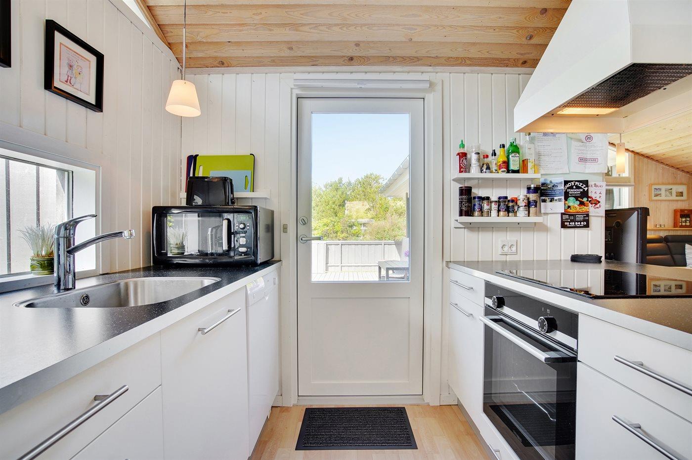 Die Küche ist mit Kühlschrank ausgestattet. Außerdem gibt es 4 Induktions-Kochzonen, Umluftofen, Mikrowelle sowie Geschirrspüler.