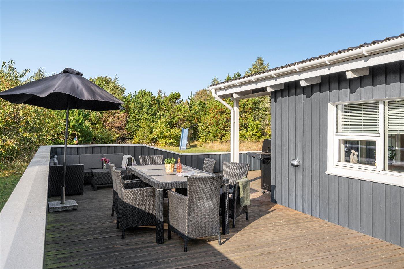 Die Ferienunterkunft liegt auf einem 2714 m² großen Naturgrundstück. Die Entfernung zum Meer beträgt 250 m. Die nächste Einkaufsmöglichkeit liegt 8000 m entfernt. Es steht ein 75 m² Terrassenareal zur Verfügung. Außerdem gibt es 8 m² überdachte Terrasse. Schaukel. Rutsche. Außendusche. Es steht ein Grill zur Verfügung. Es ist ein Ladestecker für Elektroautos installiert. Parkplatz auf dem Grundstück.