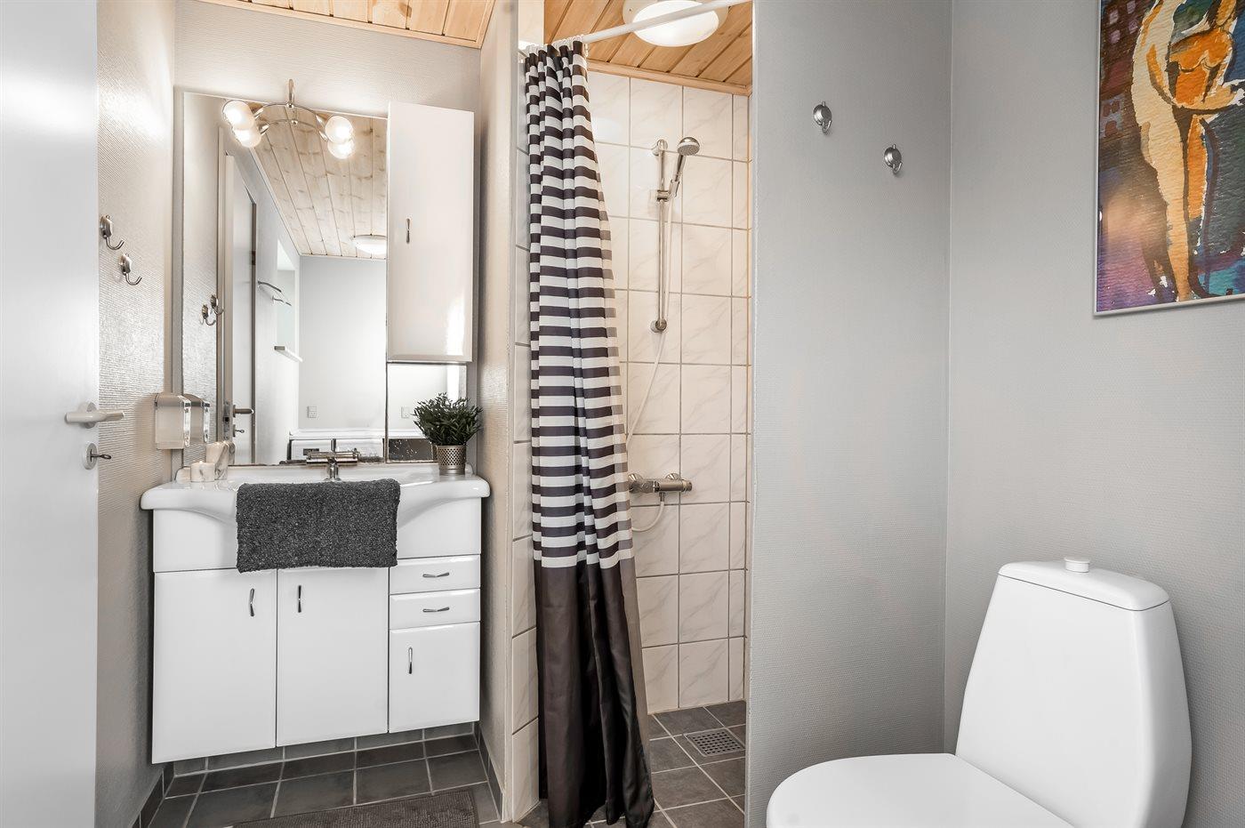 Es gibt 1 Badezimmer mit Duschnische und 1 Toilette. Es steht eine Sauna zur Verfügung in der Sie sich so richtig entspannen können.