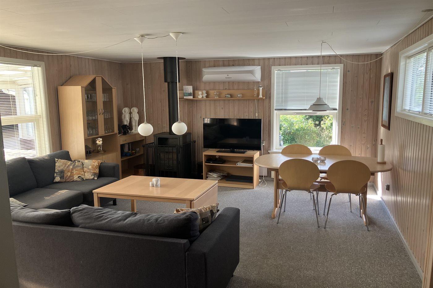 Das Ferienhaus eignet sich für 6 Personen sowie 1 Kleinkind bis zu 3 Jahren. Die Ferienunterkunft hat eine Wohnfläche von 81 m² und wurde 1972 gebaut. 2001 wurde die Ferienunterkunft renoviert. Es ist erlaubt 1 Haustier mitzubringen. Katze nicht erlaubt wegen Allergie. In der Ferienunterkunft ist eine energiesparender Luft zu Luft Wärmepumpe installiert. Die Ferienunterkunft ist mit Waschmaschine ausgestattet. Tiefkühlmöglichkeit mit 20 Liter Nutzinhalt. Es gibt außerdem einen Kaminofen. Für die jüngsten Feriengäste ist 1 Kinderhochstuhl vorhanden. Wickeltisch.