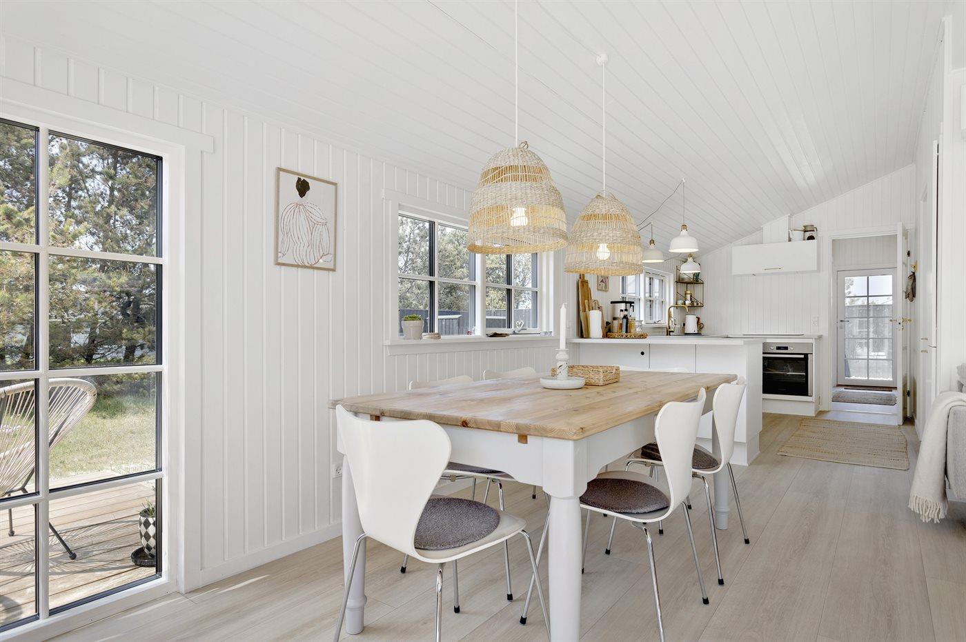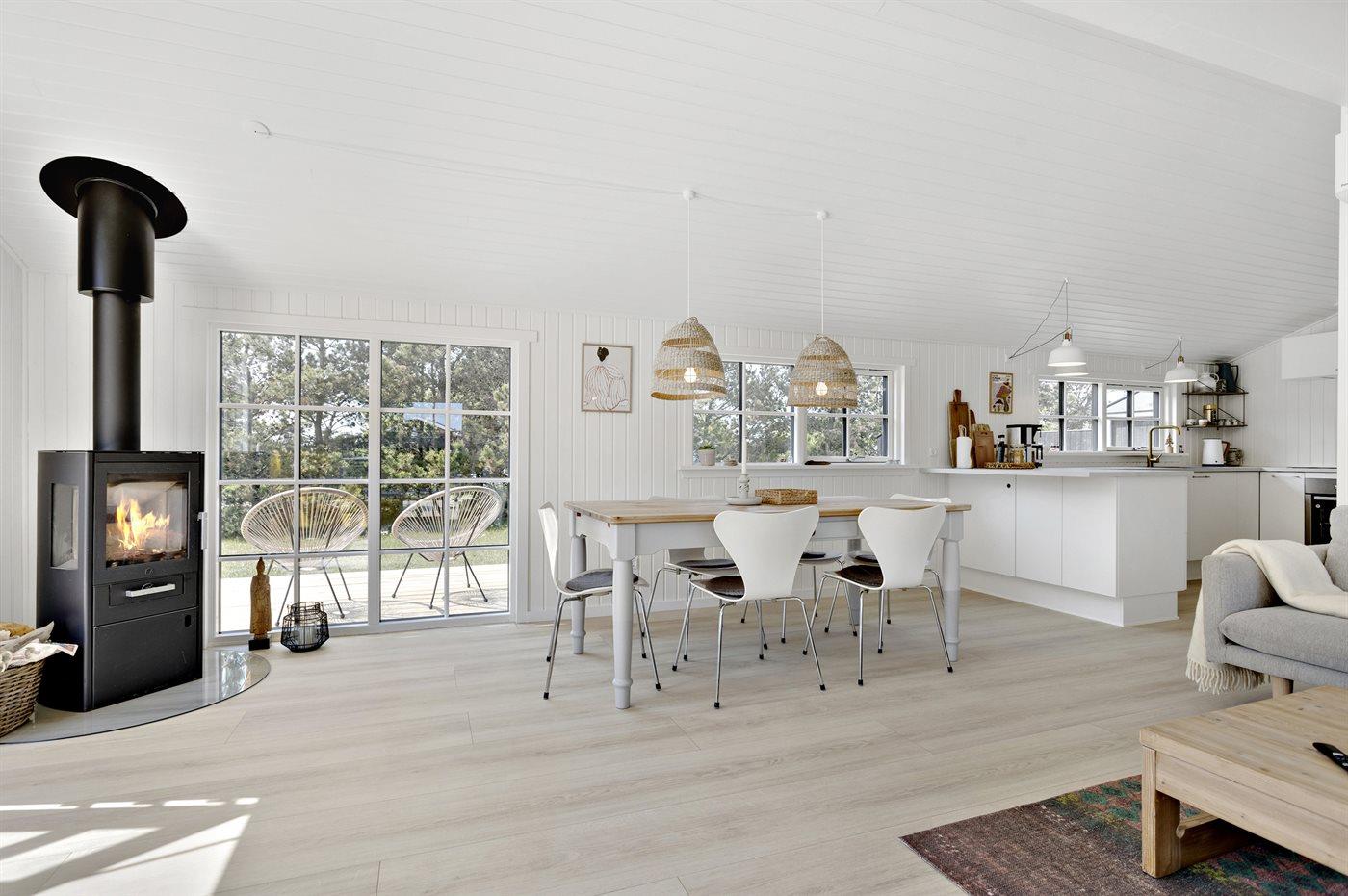 Dieses gemütliche, kleine Ferienhaus, 2023 modernisiert, liegt mitten in der schönen Landschaft bei Lyngså, südlich von Sæby. Der feine Sandstrand, liegt nur etwa 150 Meter vom Haus entfernt.