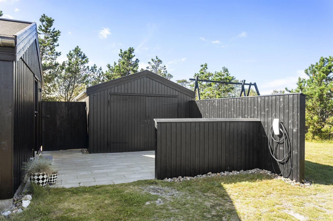 Die Ferienunterkunft liegt auf einem 850 m² großen Das Grundstück ist eingezäunt. Die Entfernung zum Meer beträgt 150 m. Die nächste Einkaufsmöglichkeit liegt 8000 m entfernt. Es steht ein 125 m² Terrassenareal zur Verfügung. Davon insgesamt 12 m² geschlossene Terrasse. Schaukel. Außendusche. Es steht ein Grill zur Verfügung. Es ist ein Ladestecker für Elektroautos installiert. (Tesla Generation 3). Parkplatz auf dem Grundstück.