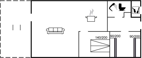 Die Schlafplätze verteilen sich auf 2 Schlafräume. 2 Schlafplätze in einem Doppelbett. 4 Schlafplätze in Etagenbetten.