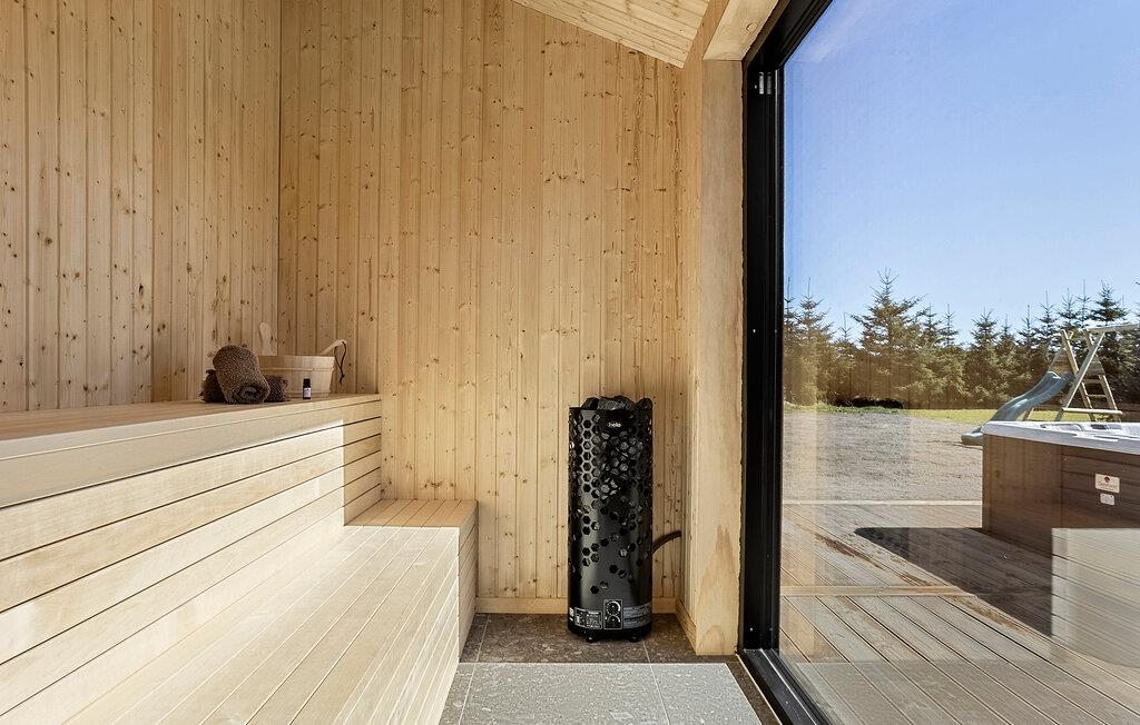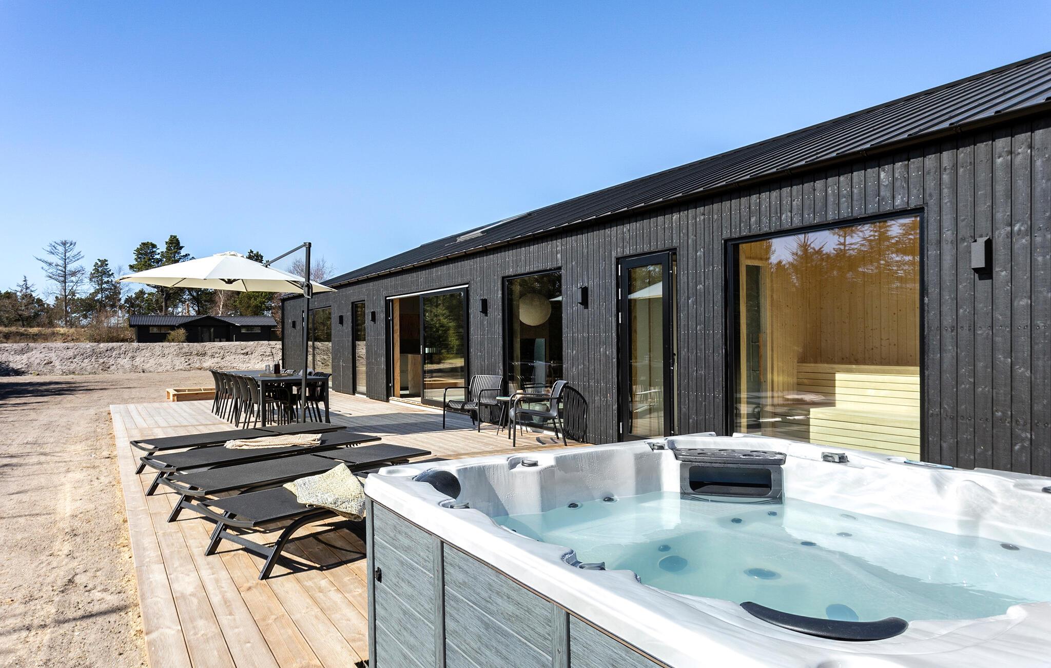 Modernes Ferienhaus mit Sauna und Whirlpool nahe kinderfreundlichem Strand in Dänemark.