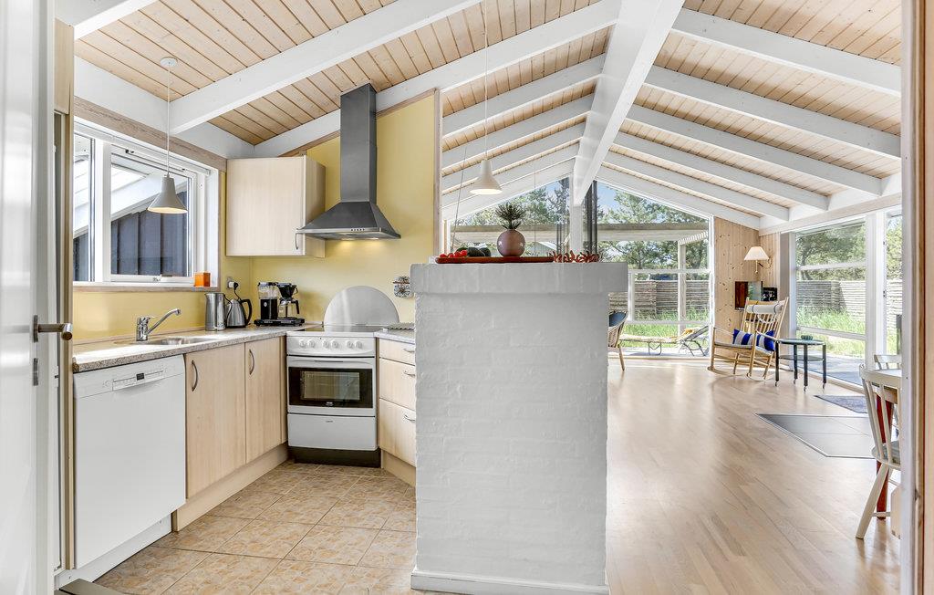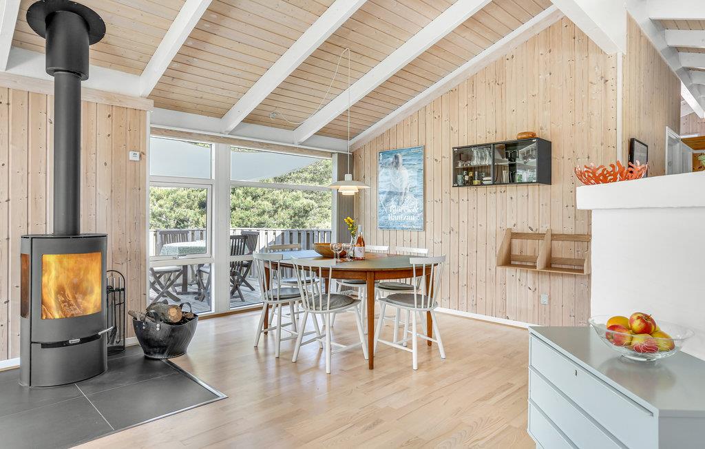 Erleben Sie ein lichtdurchflutetes Ferienhaus mit Kamin und direktem Zugang zum Strand in Sæby, Dänemark.
