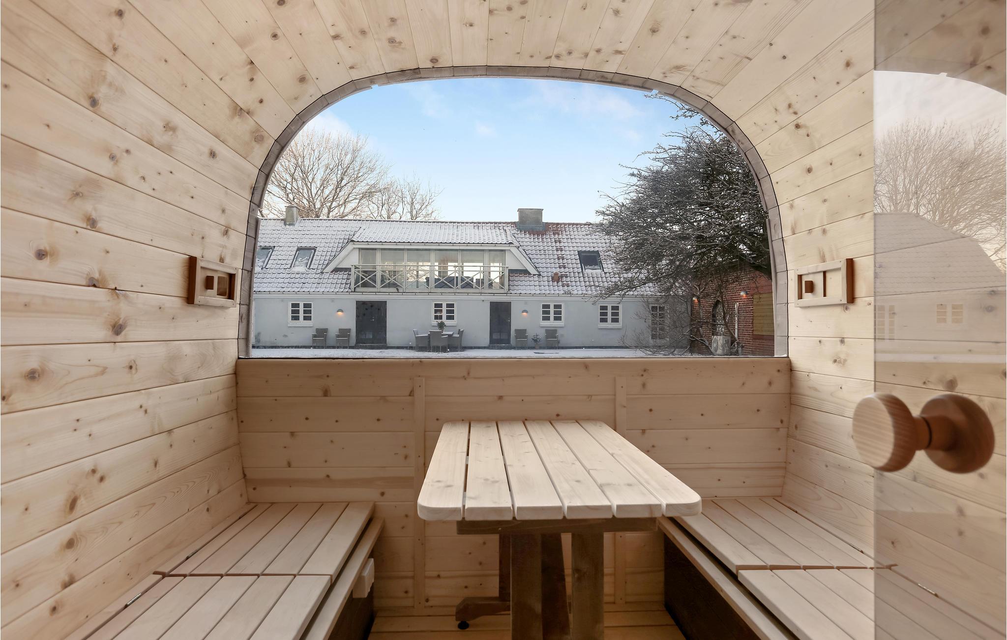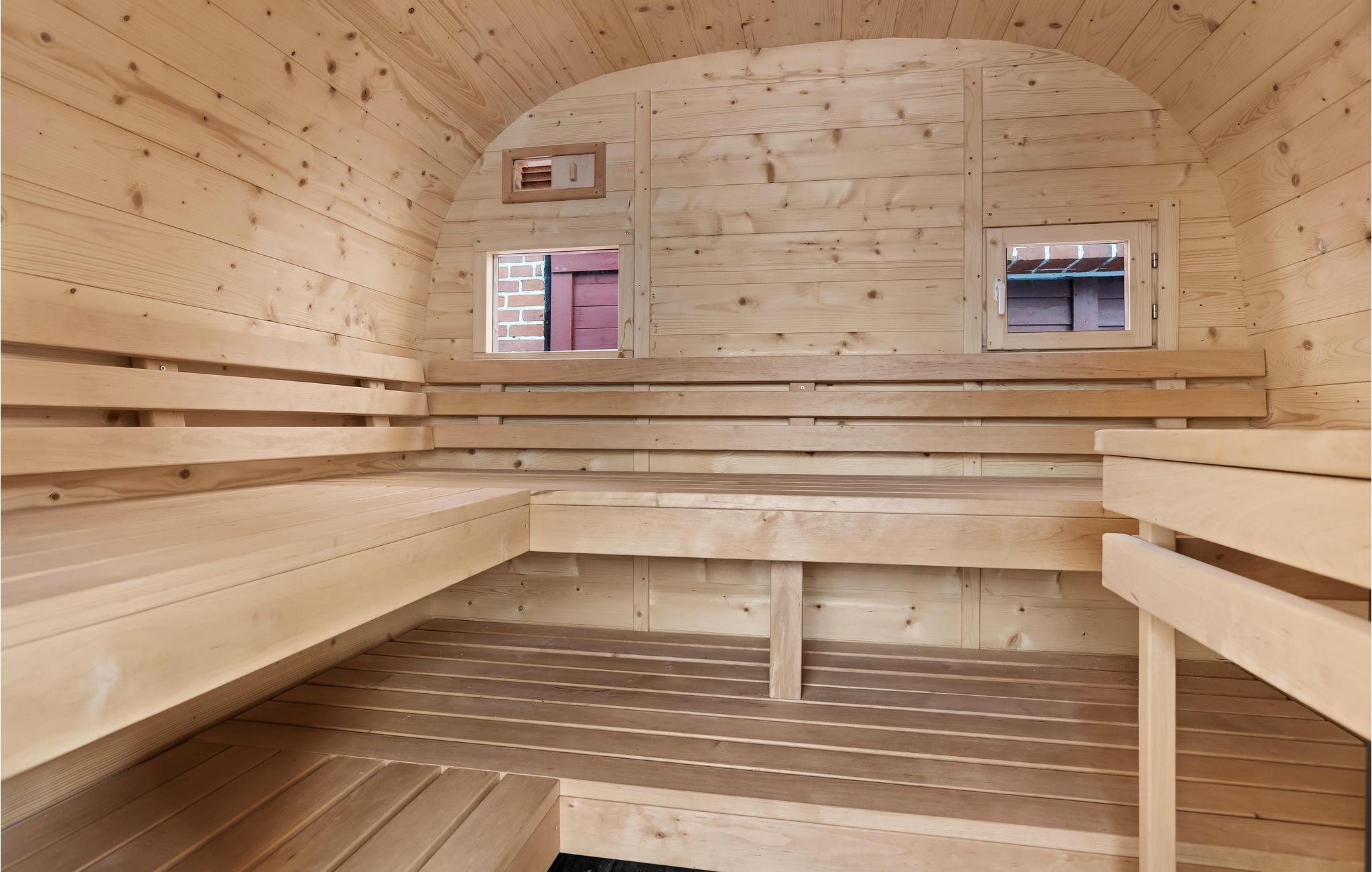 Machen Sie sich es in den Gartenmöbeln bequem, während die Kinder schaukeln oder im Sandkasten spielen, oder spielen Sie alle gemeinsam ein Fußballmatch. Im Anschluss können Sie in der Fassauna entspannen, die Ihnen durch den Holzofen eine schöne Wärme und hohe Temperaturen zum Schwitzen bietet, oder das Finnische Holzbad zum Relaxen nutzen.