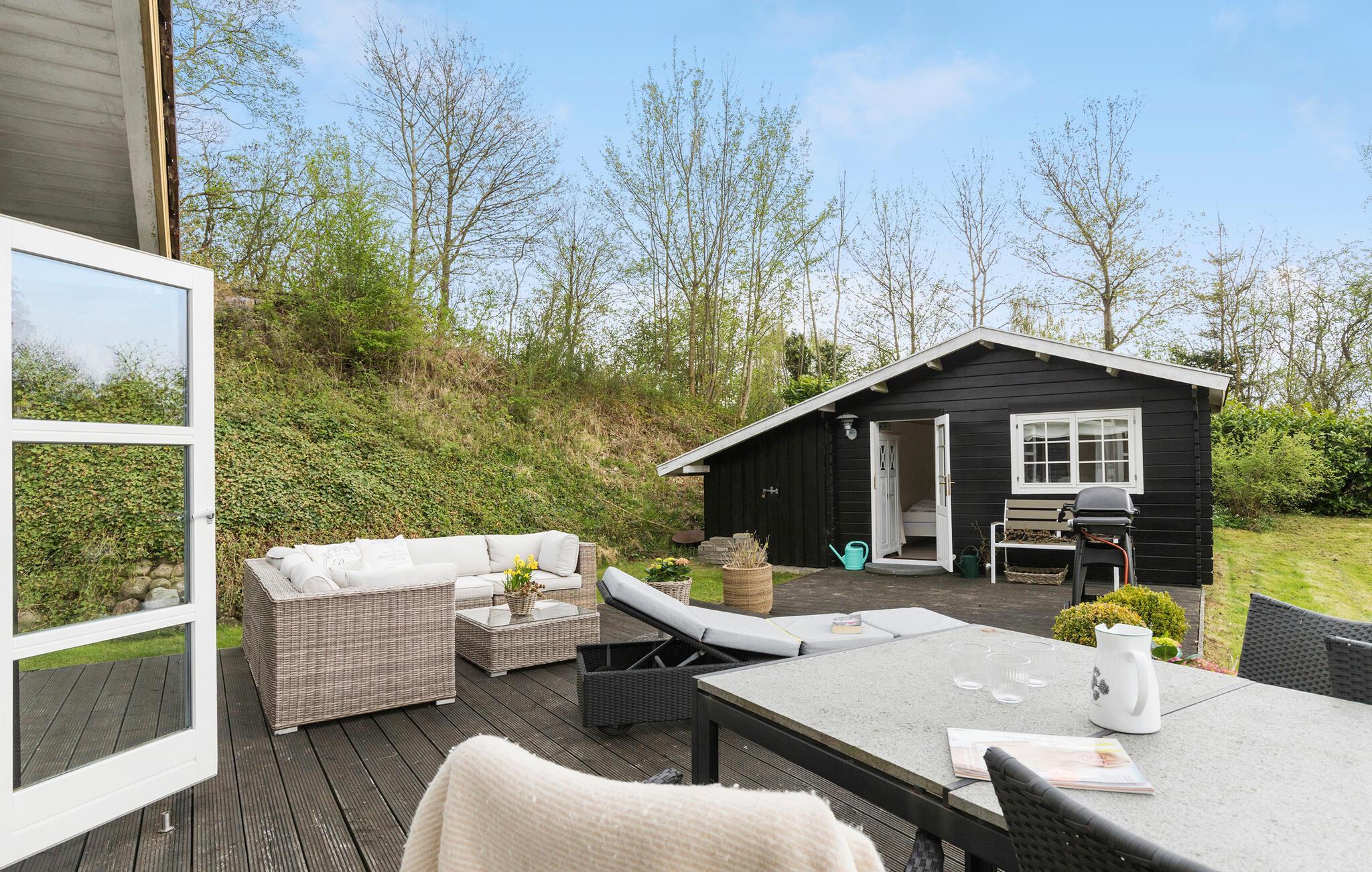 Komfortables, stilvolles Ferienhaus nahe der Küste mit großer Terrasse und Kaminofen für erholsame Tage an der malerischen Bucht von Ebeltoft.