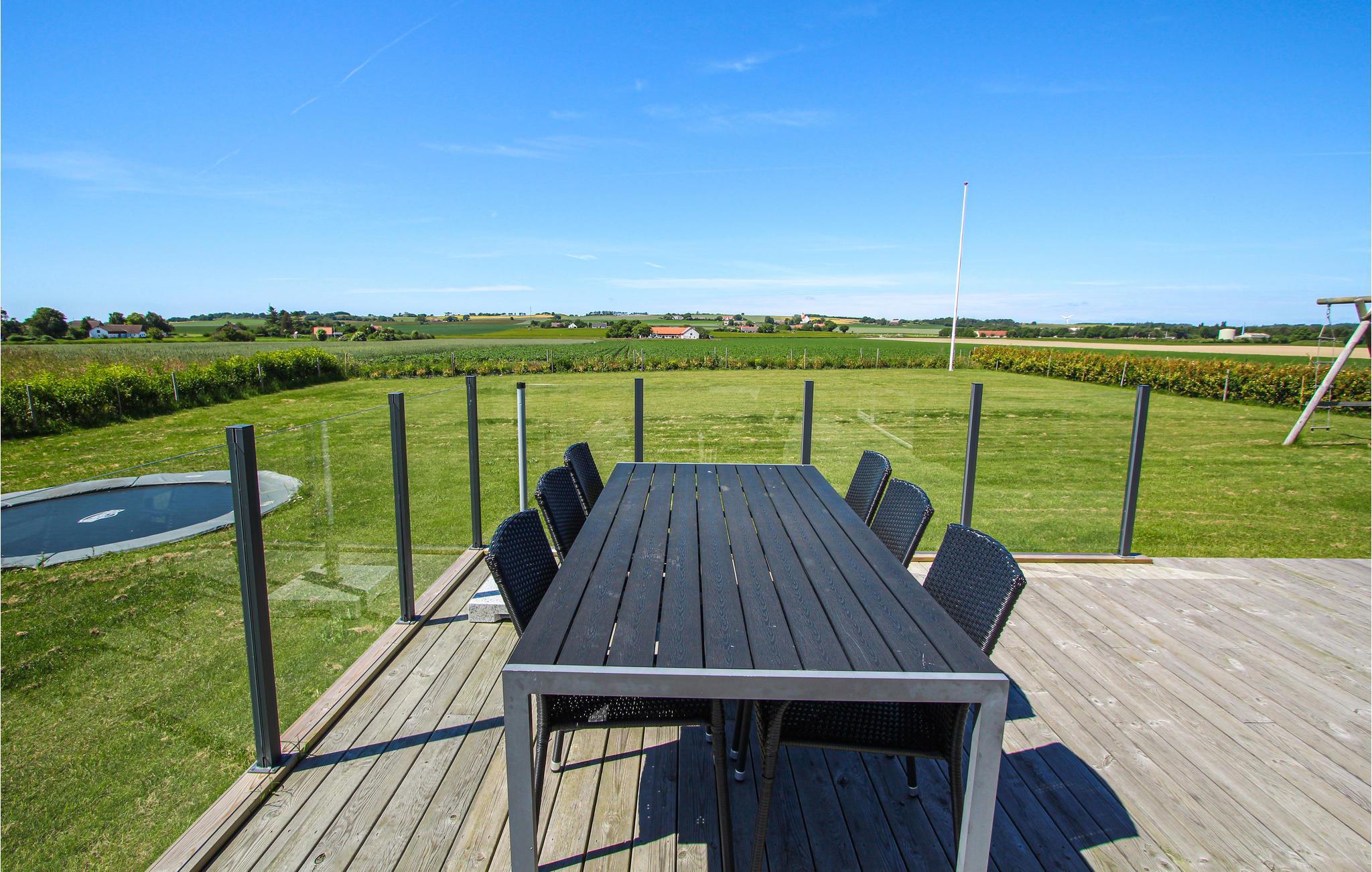 Ob gemeinsames Kochen, ausgedehntes Essen oder einfaches Entspannen auf dem Sofa - das alles findet hier vor einer wunderschönen Kulisse aus grünen Feldern und saftigen Wiesen statt, die Sie durch großflächige Panoramafenster bewundern können. Feuern Sie abends im Kaminofen an und machen Sie es sich gemütlich. Beim Nachmittagskaffee auf der Terrasse, wo Sie windgeschützt sitzen, können Sie diesen Blick in vollen Zügen genießen, bevor Sie sich auf den kurzen Spaziergang zum Strand begeben.