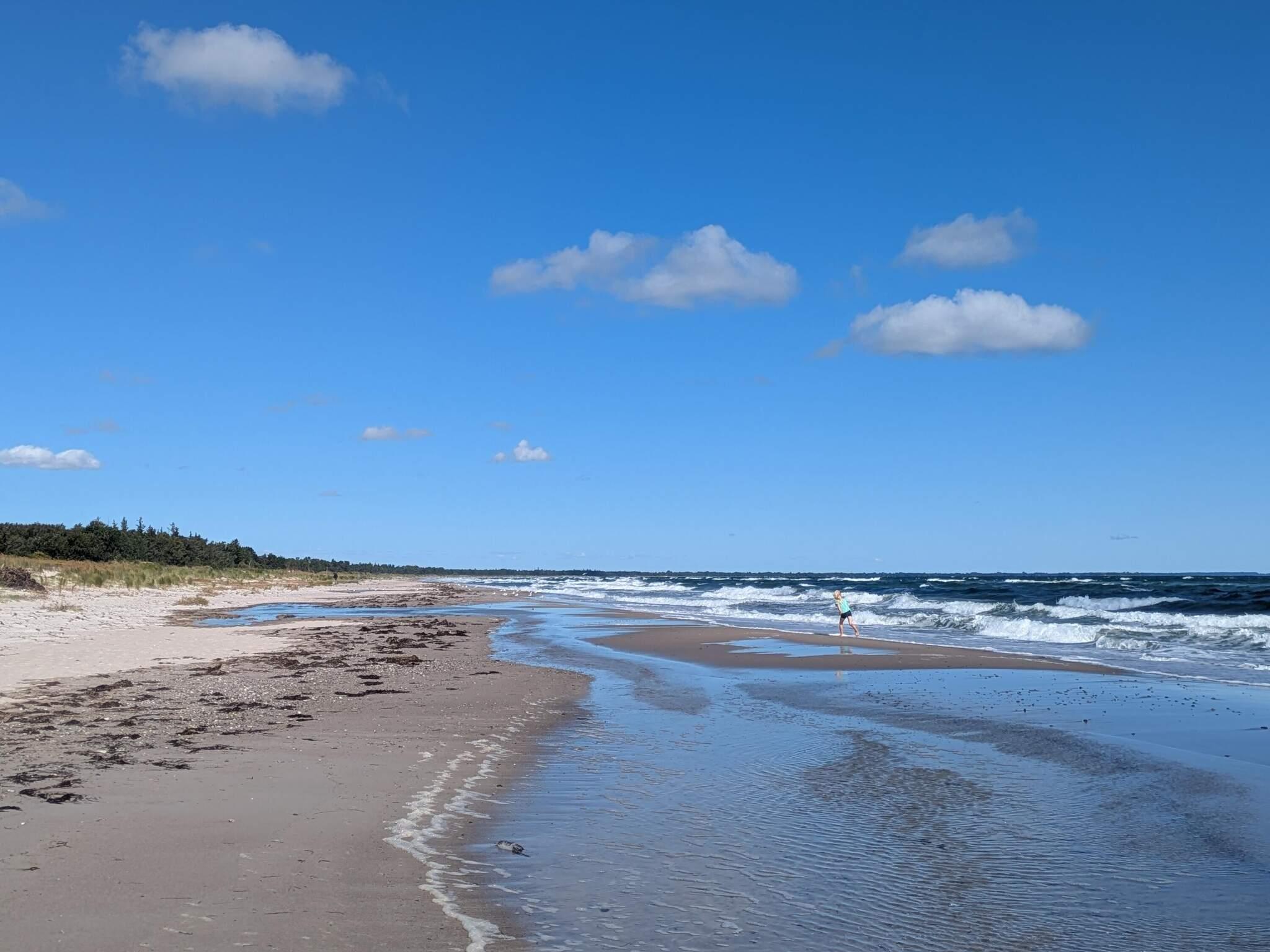 Ferienhaus nur etwa 200 m vom Strandufer und der Ostsee entfernt. Bietet Platz für bis zu sechs Personen und hat drei Schlafzimmer mit jeweils zwei Schlafplätzen in Betten.