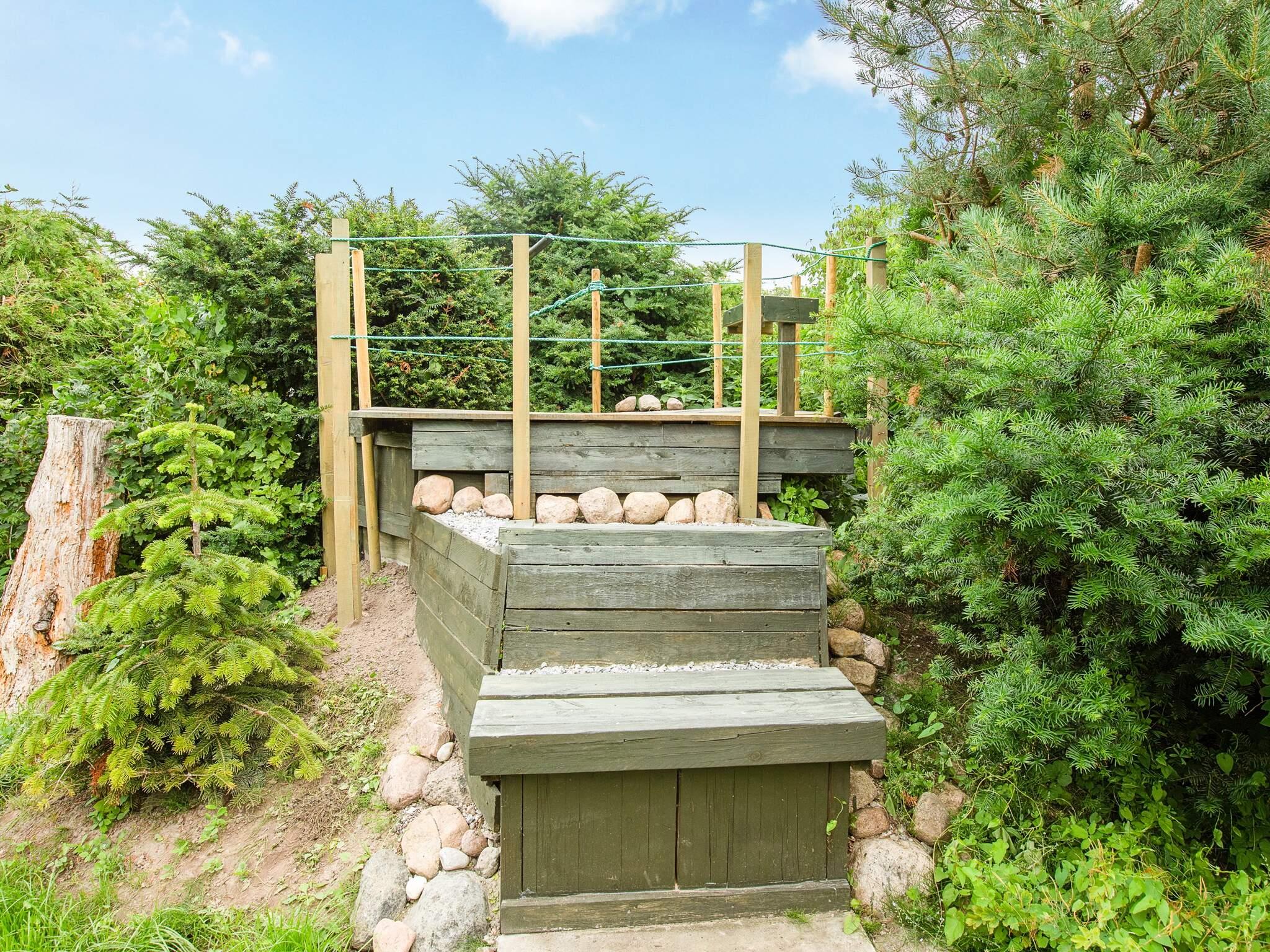 Im Außenbereich erwartet Sie ein schön geschütztes Gartengrundstück mit wunderbaren Sitzecken und Rasenfläche für Spiel und Spaß. Es gibt auch eine Holzterrasse mit einem kleinen Gartentisch mit Stühlen und einer Bank. Kugelgrill auf der Terrasse.