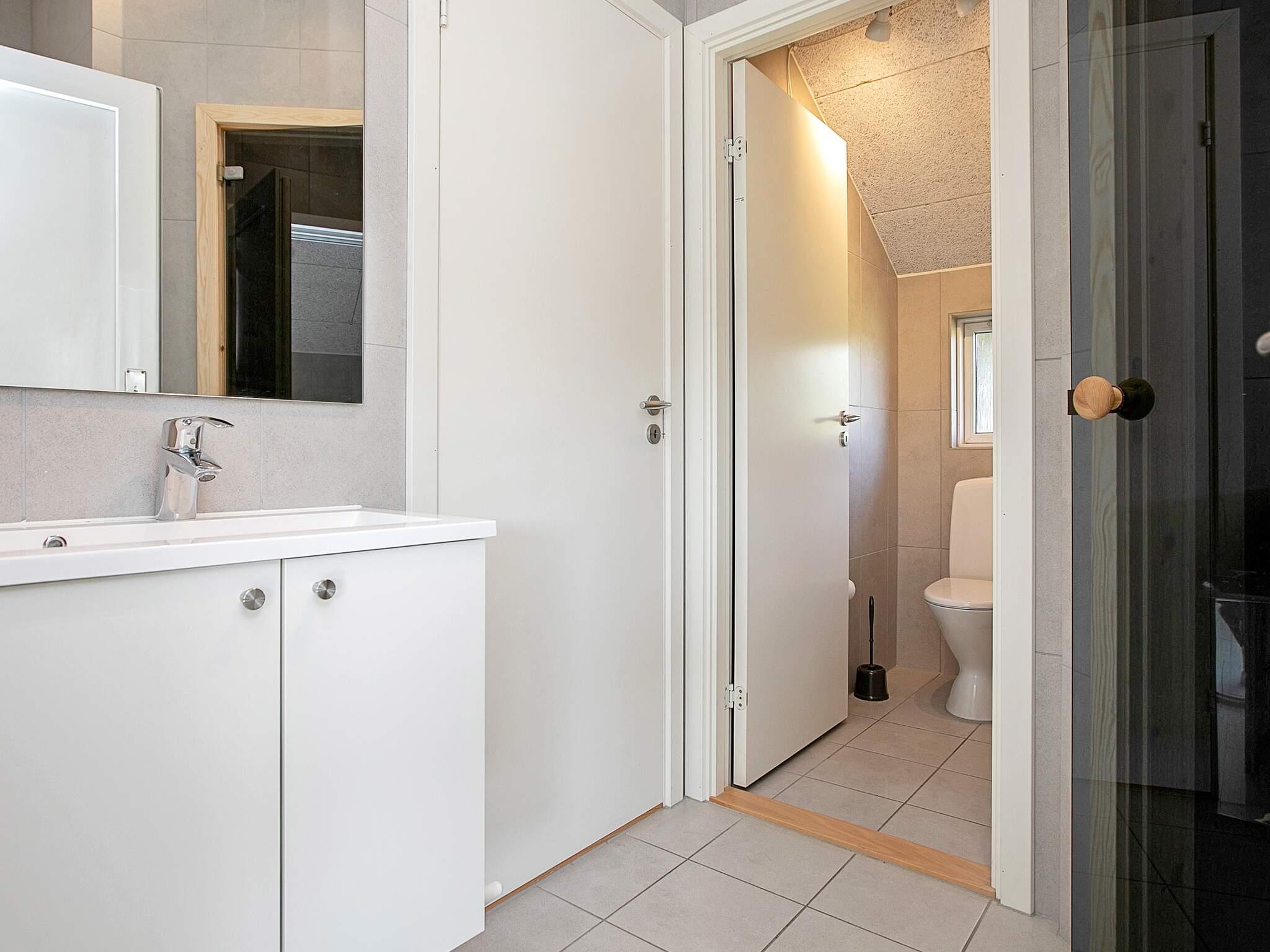 Bad mit Dusche und Fußbodenheizung. Zu dem Haus gehört außerdem ein