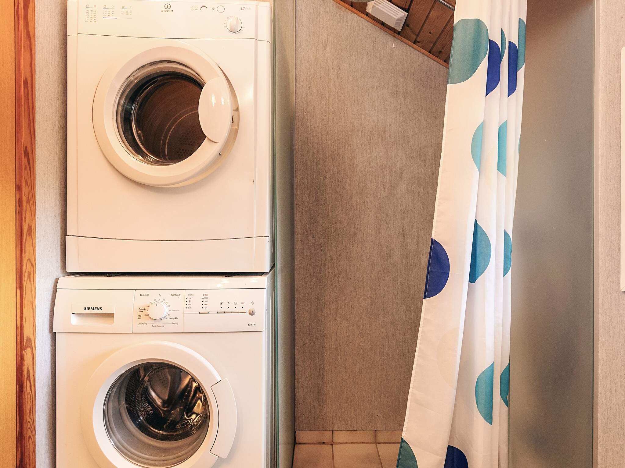 Off. Küche: E-Herd, Kühlschr. m. Gefrierfach, Gefriertruhe 1-59 l., Mikrow., Abzugsh., Kaffeem., Spülm., Waschm, Trockner
