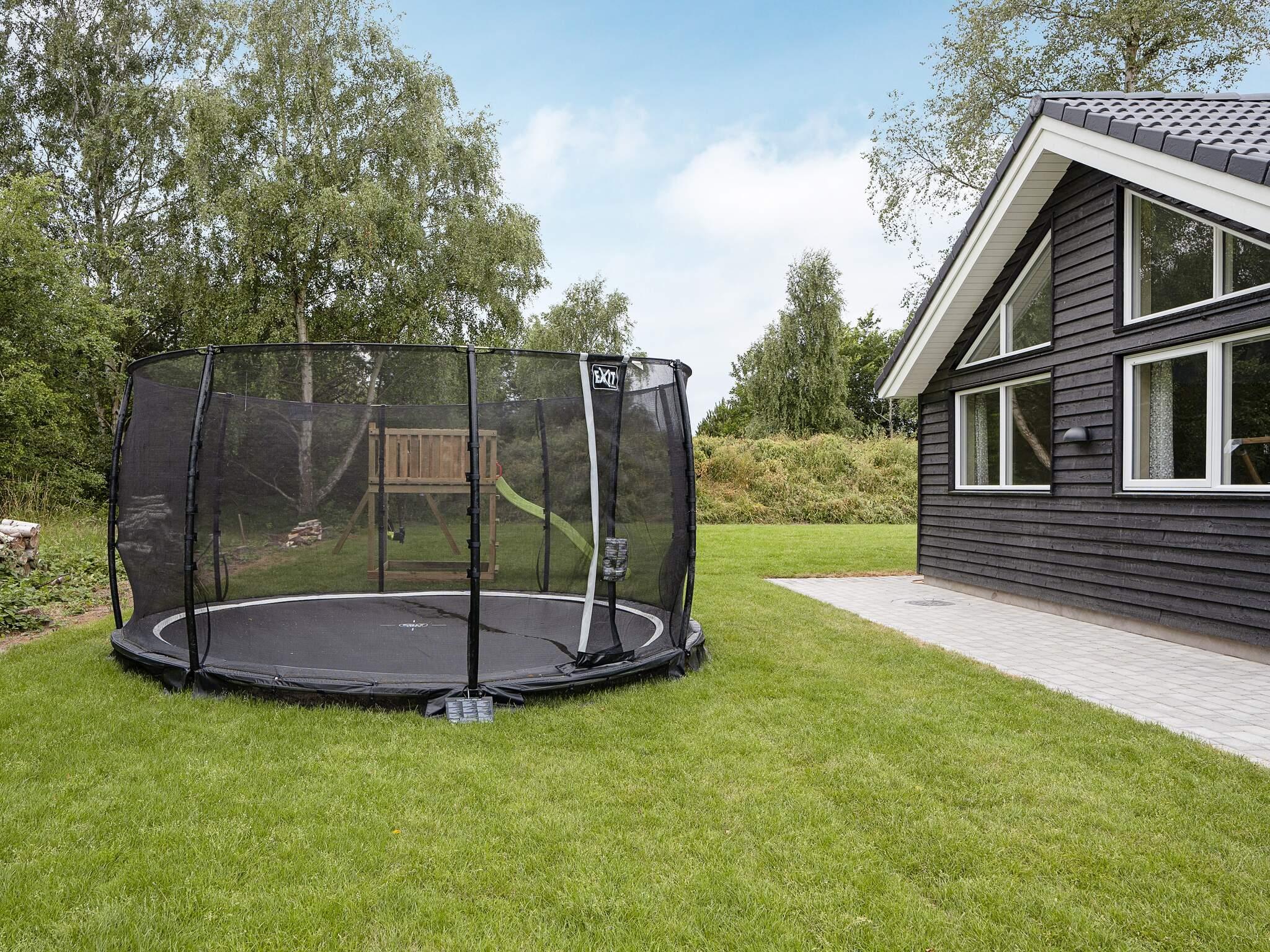 Die Terrasse des Ferienhauses ist teilweise überdacht und erweitert die Küche/das Wohnzimmer und den Aktivitätsraum. Hier finden Sie den perfekten Rahmen für einen Grillabend. Im Garten gibt es einen Spielturm mit Schaukel, ein Bodentrampolin (Benutzung auf eigene Gefahr/Versicherung) und die Möglichkeit, auf der Wiese Ball zu spielen.