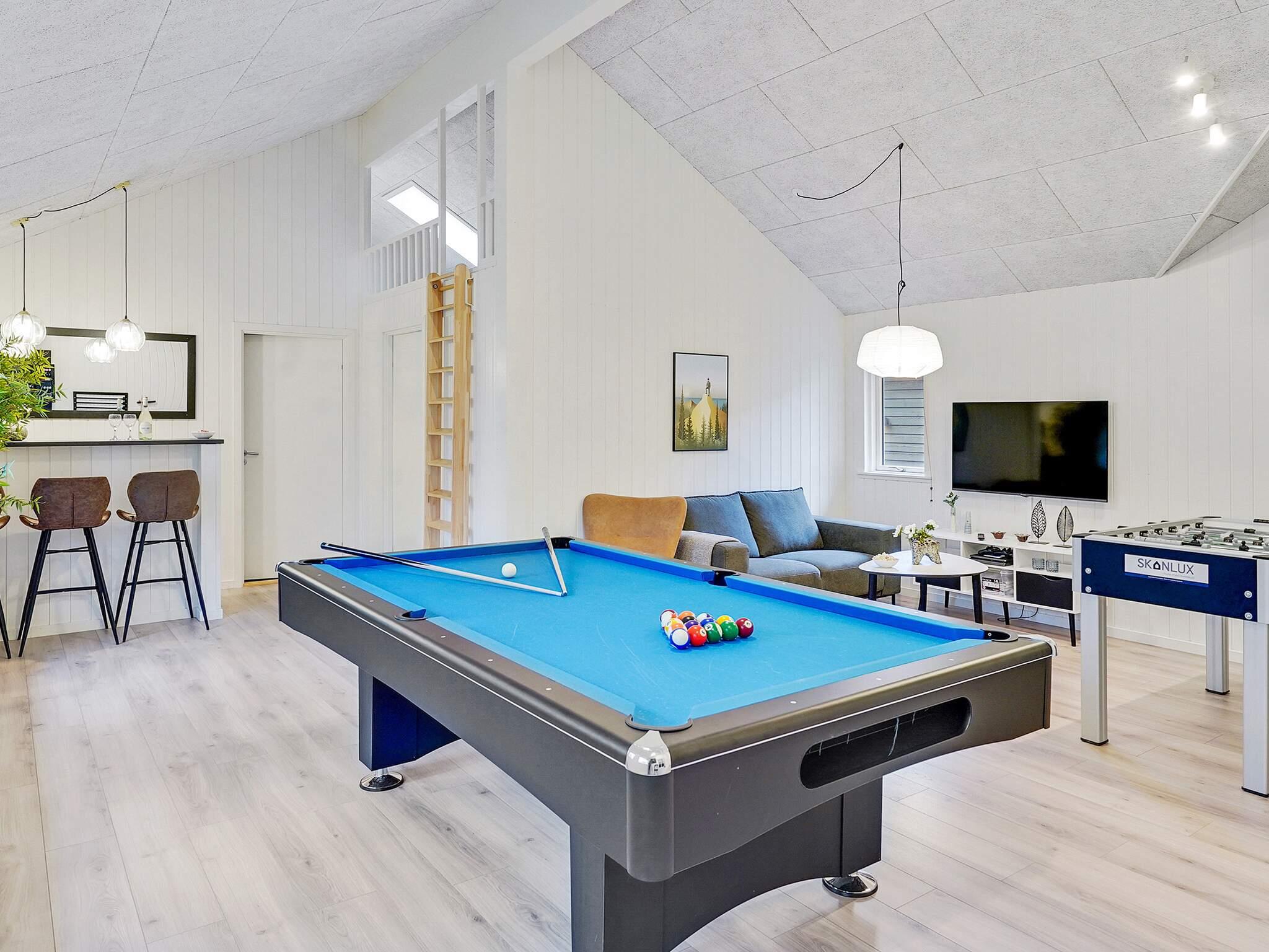 Zusätzlich gibt es einen großen Aktivitäts- und Spielraum. Hier können Sie Billard/Tischtennis, Tischfußball und Darts spielen. Im Sofabereich neben dem Fernseher befindet sich eine PlayStation 4, auf der Sie Spiele spielen (denken Sie daran, Ihre eigenen Spiele mitzubringen) oder einen guten Film ansehen können. Darüber hinaus können Sie sich gemütlich in der Zimmerbar unterhalten, wo Getränke im eigenen Kühlschrank gekühlt werden können.