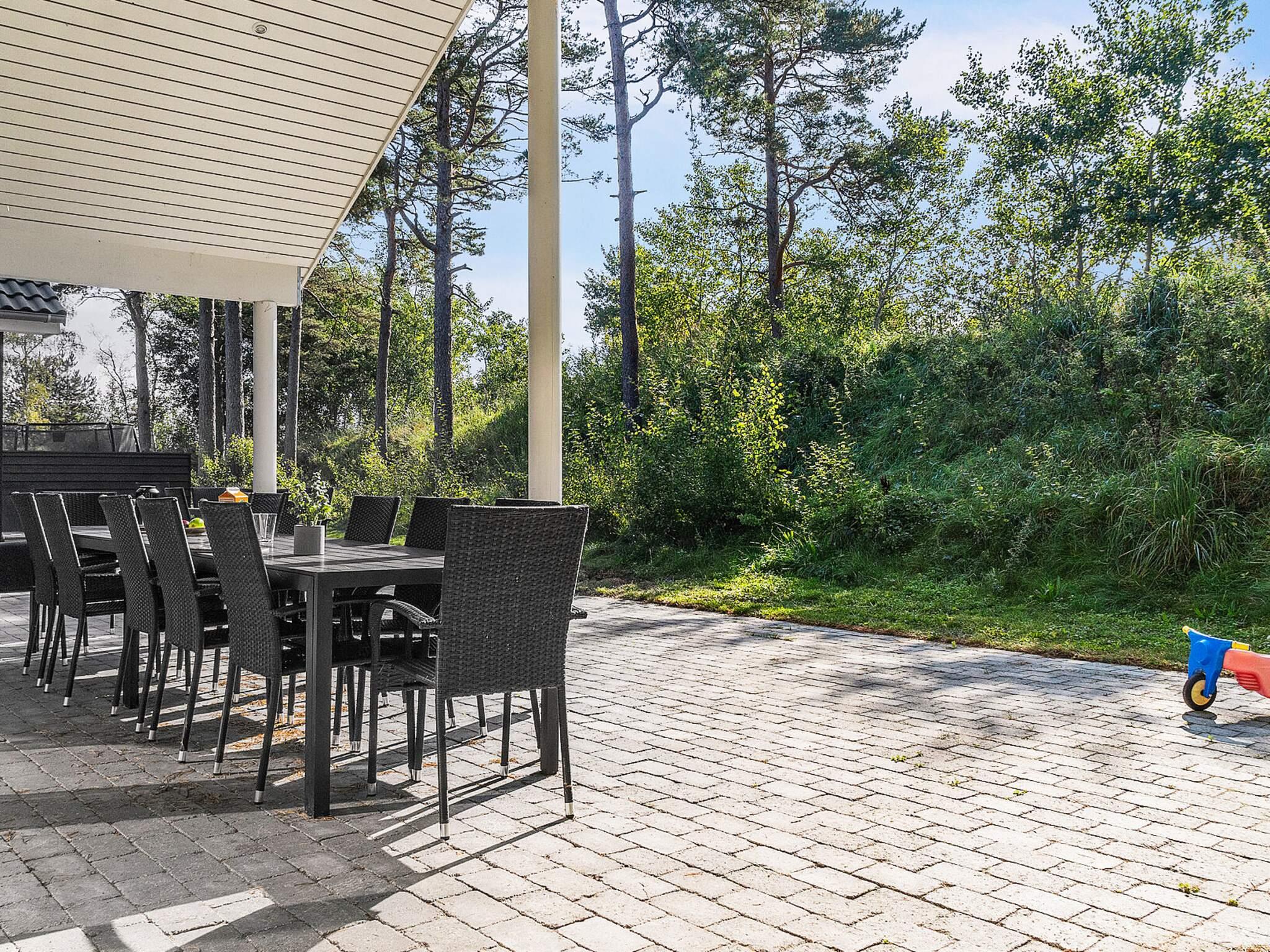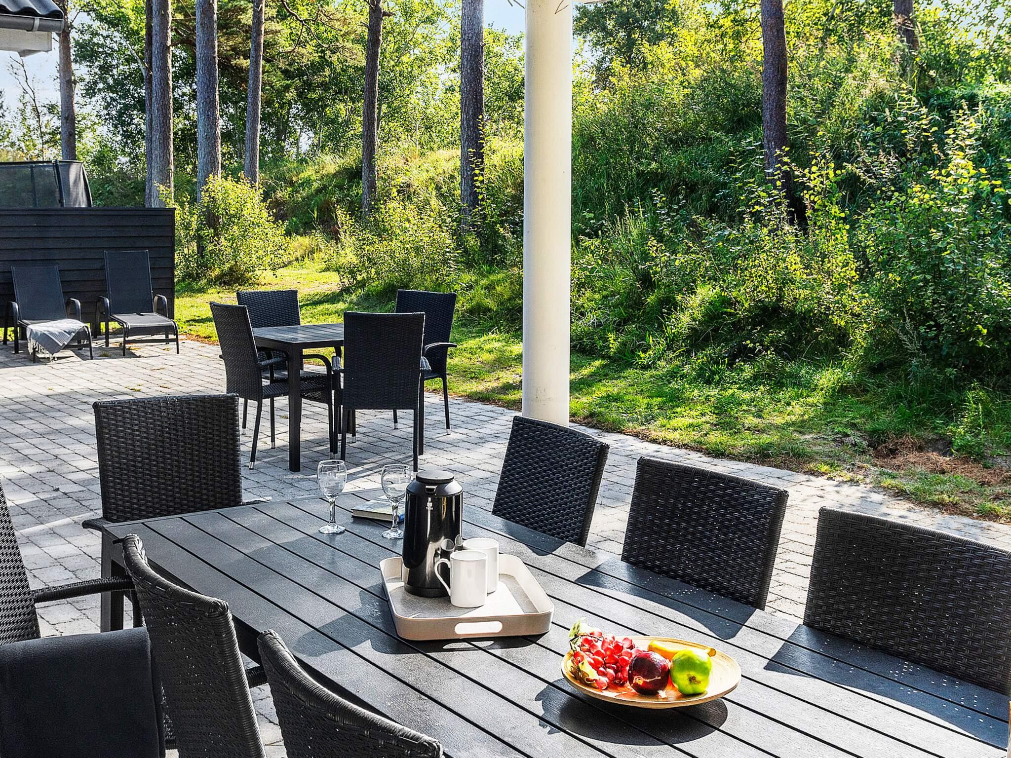 Die teilweise überdachte Terrasse bietet reichlich Gelegenheit, die dänische Sonne zu genießen. Gartenmöbel und ein Grill laden zu einem gemütlichen Grillabend ein. Darüber hinaus gibt es ein Bodentrampolin und eine Außendusche im Garten, wo Sie sich an wärmeren Tagen oder nach einem Strandausflug abkühlen können.