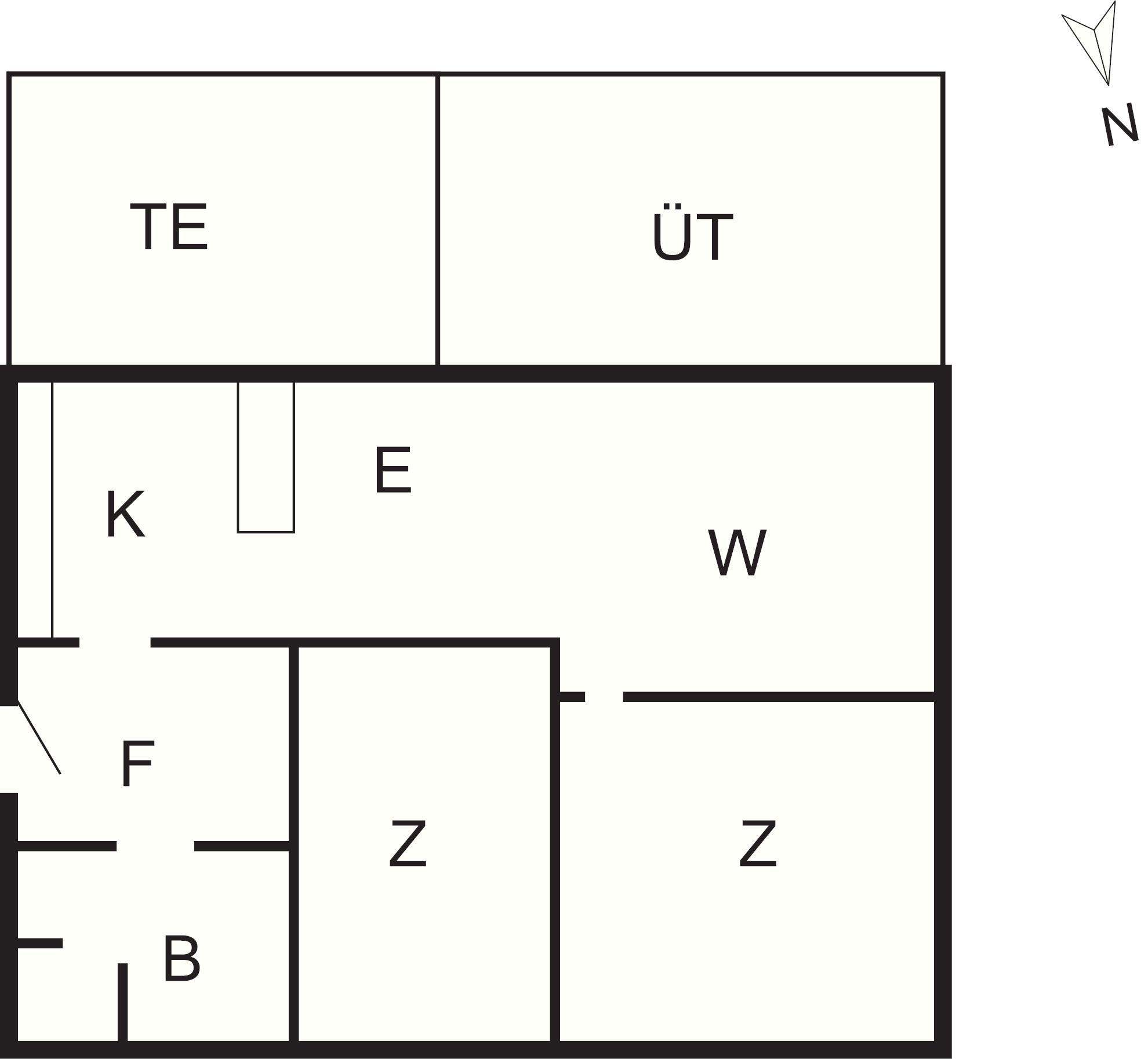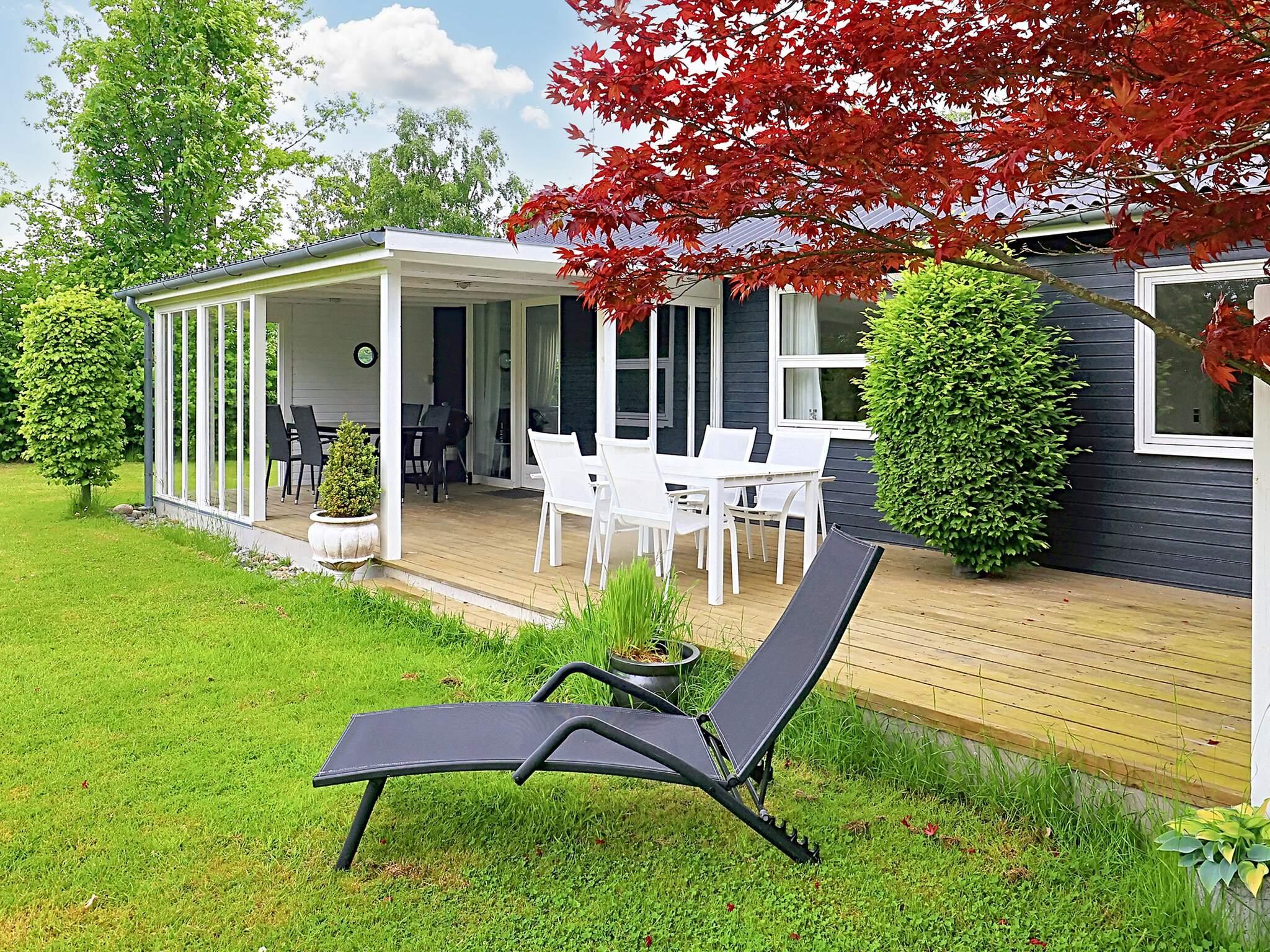 Vom Wohnzimmer aus haben Sie Zugang zur überdachten Terrassenfläche mit Gartenmöbeln, Sonnenschirm und Holzkohlegrill, wo Sie Ihren Morgenkaffee genießen oder nach einem langen Tag am Strand oder einem Ausflug zu den Touristenattraktionen auf Falster und Umgebung auf dem Holzkohlegrill Ihr Abendessen zubereiten können. Das Ferienhaus liegt auf einem Naturgrundstück mit Bäumen von 1.084 m2 Größe mit Platz für Spiel und Spaß.