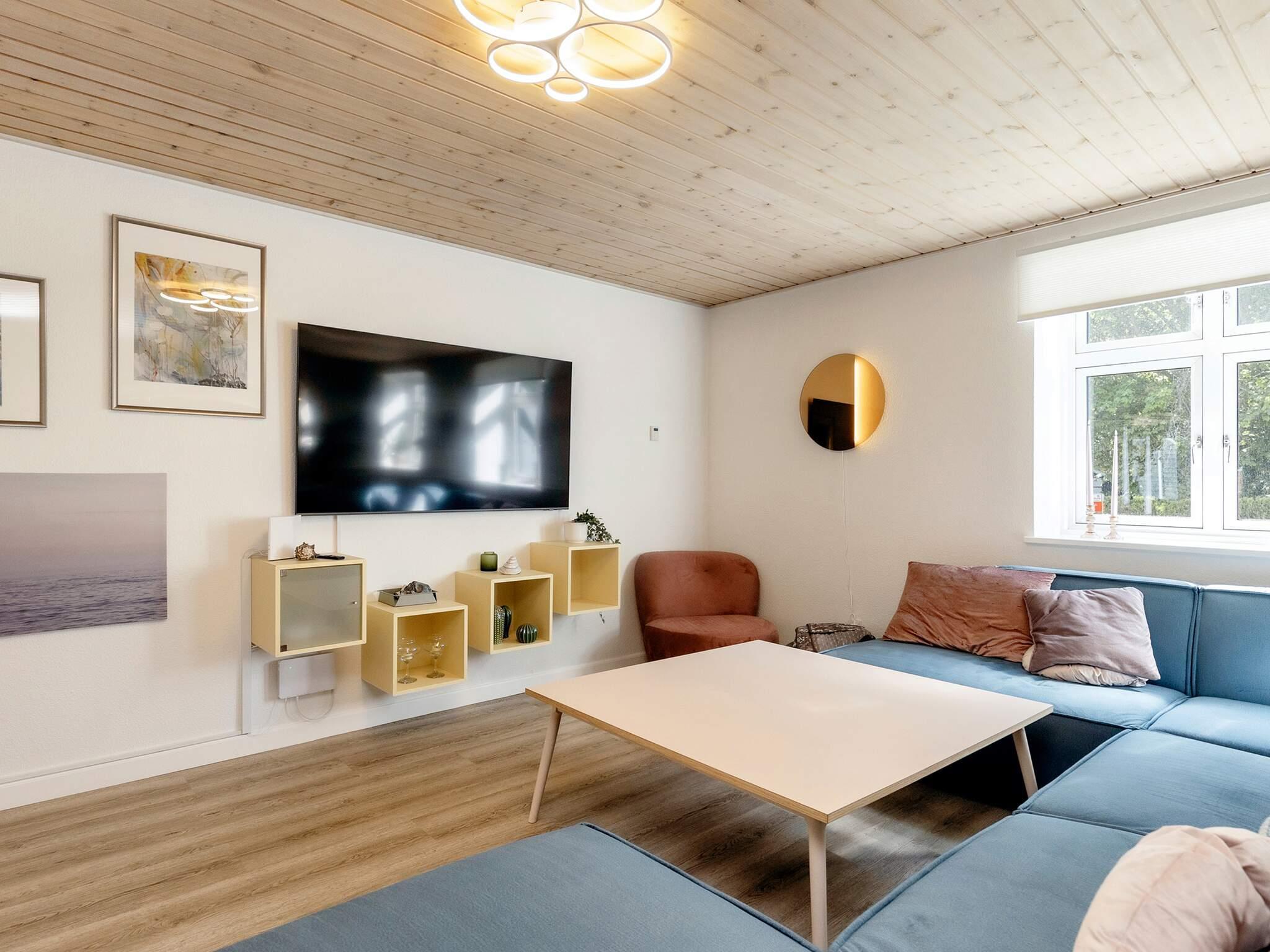 In der Küche des geräumigen Hauses gibt es u.a. Induktionsherd, separaten Backofen, Mikrowelle, Kühlschrank und Kaffeemaschine sowie Geschirrspüler. Das geräumige Wohnzimmer ist mit einer gemütlichen Sitzecke mit U-förmiger Sitzecke sowie Smart-TV, einer Essecke und einem weiteren Sofa, vor der Spielekonsole und dem Smart-TV, ausgestattet.