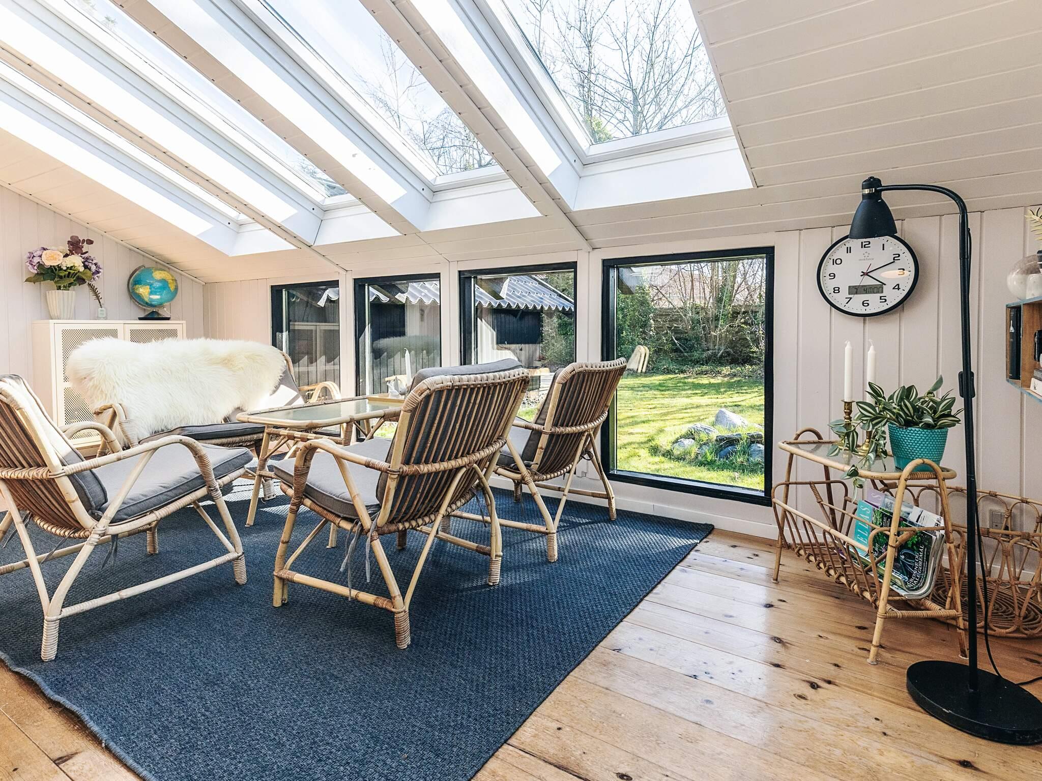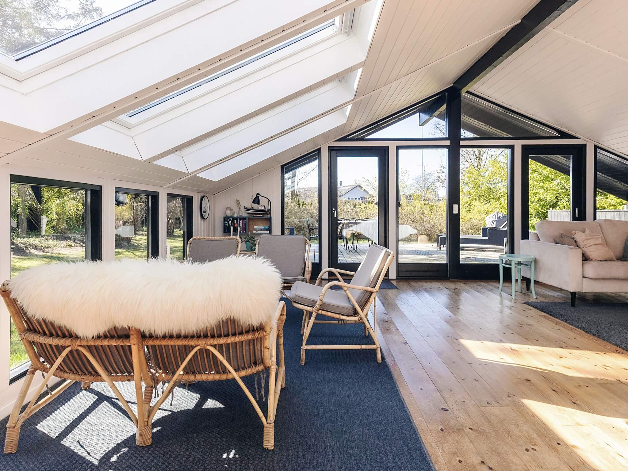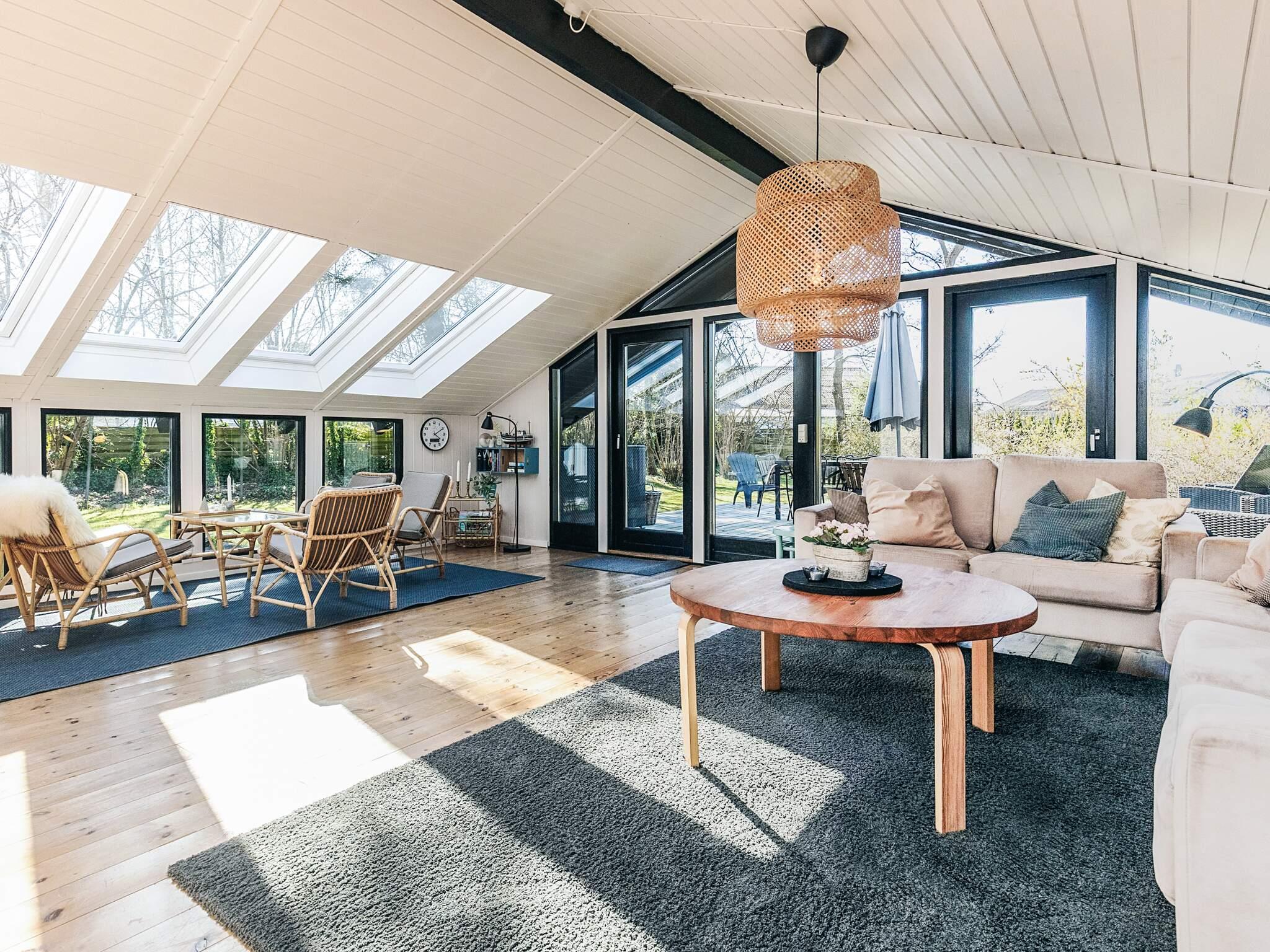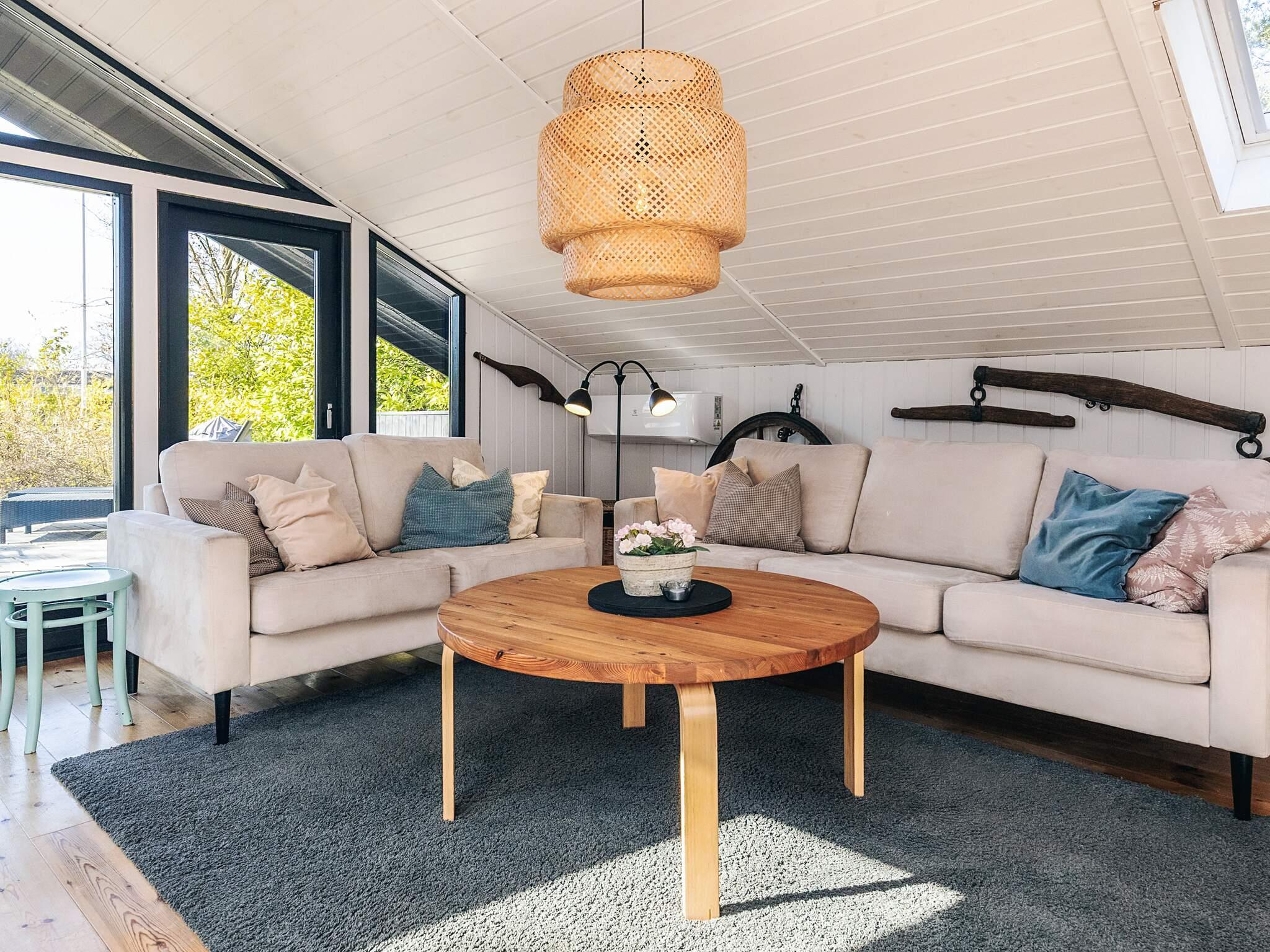 Das Wohnzimmer verfügt über einen Smart-TV und Internet sowie fantastisches Licht durch die Oberlichter über einer der Sitzgarnituren. Vom Wohnzimmer aus gelangt man ebenfalls direkt hinaus auf die große Holzterrasse.