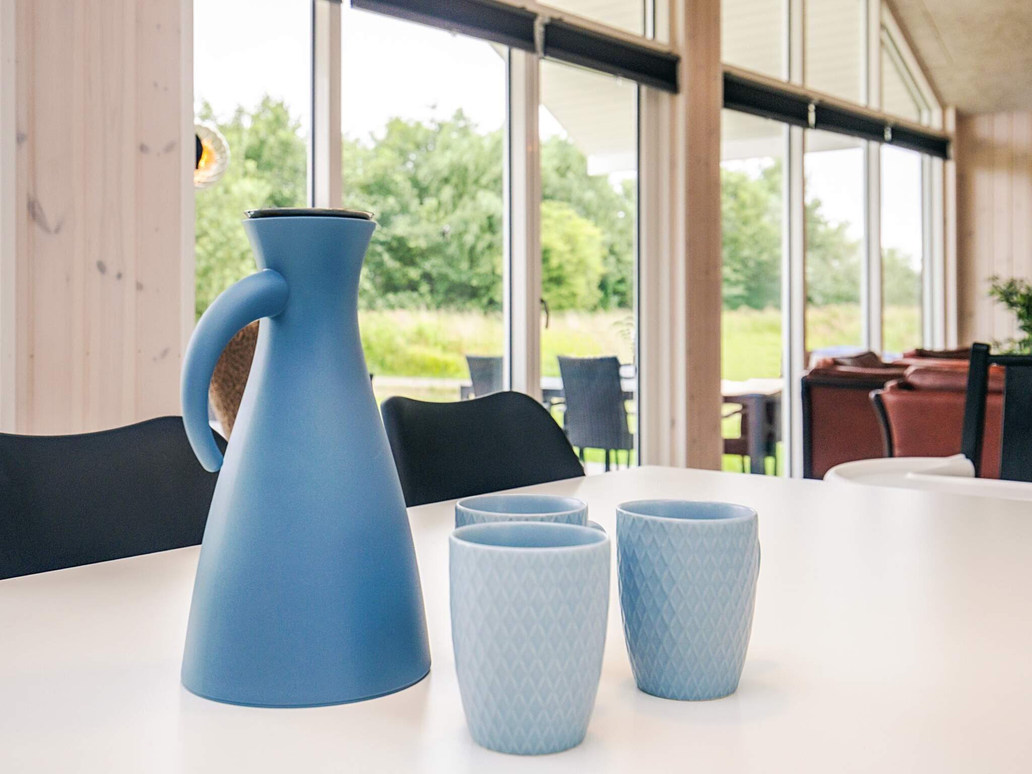 Das gemütliche Wohnzimmer ist mit einer modernen Küche kombiniert, die über einen Induktionsherd, einen separaten Backofen und eine Mikrowelle, eine Kaffeemaschine, einen Kühl-Gefrierschrank und einen Geschirrspüler verfügt. Die Fensterfront sorgt für schönes Tageslicht im Wohnzimmer und am Esstisch. Das Wohnzimmer verfügt über einen Smart-TV und WLAN.