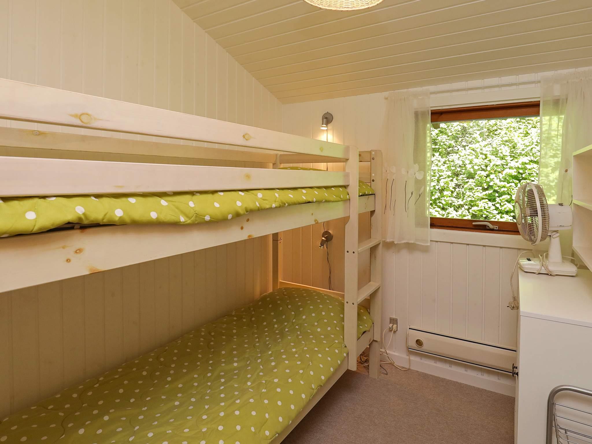 Innen gibt es ein Wohnzimmer und einen offen integrierten Küchenbereich mit Cerankochfeld, Dunstabzugshaube, Kühlschrank mit 40 l Gefrierfach sowie kleiner Spülmaschine. Es stehen außerdem zwei Schlafzimmer mit je einem Doppelbett und ein Schlafzimmer mit Etagenbett zur Verfügung. Im TV stehen auch mehrere deutsche TV-Sender zur Auswahl.