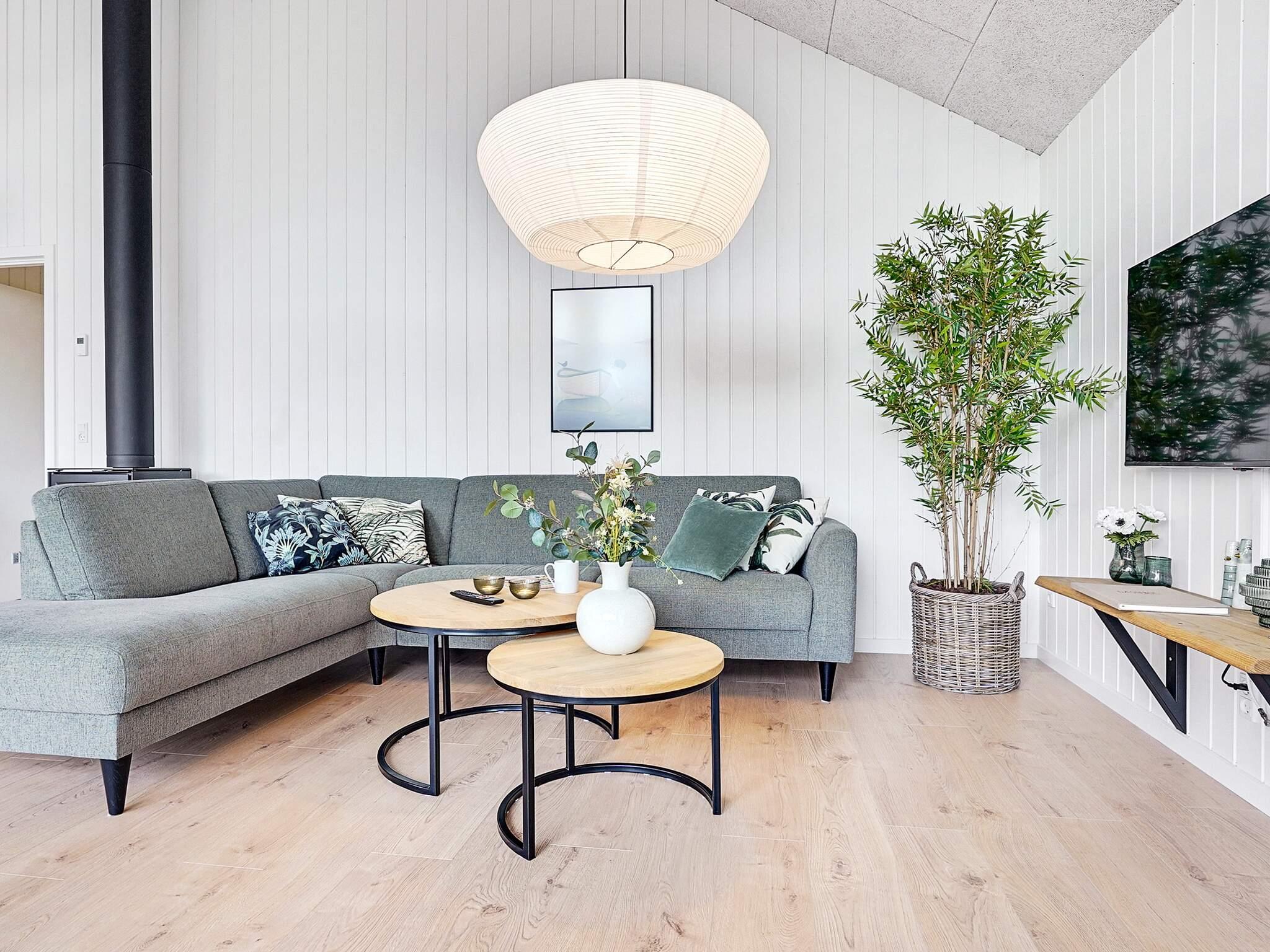 In der Mitte des Hauses befindet sich der offene Küchen-/Wohnbereich, gut ausgestattet und mit viel Platz für das Familienleben. Dort steht auch ein langer Esstisch mit Platz für die ganze Familie. An kühleren Tagen können Sie ein Feuer im Holzofen des Wohnbereichs anzünden und es sich in der Sitzecke vor dem Fernseher gemütlich machen. Im Ferienhaus gibt es zudem zwei separate Schlafbereiche mit jeweils zugehörigem Bad, ideal für einen Mehrfamilienurlaub.