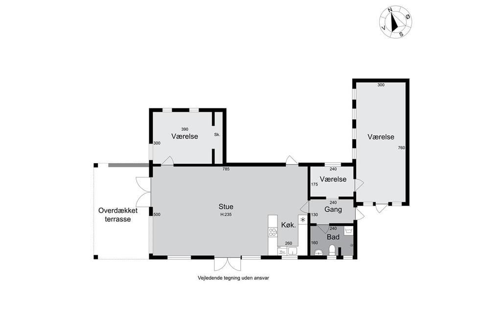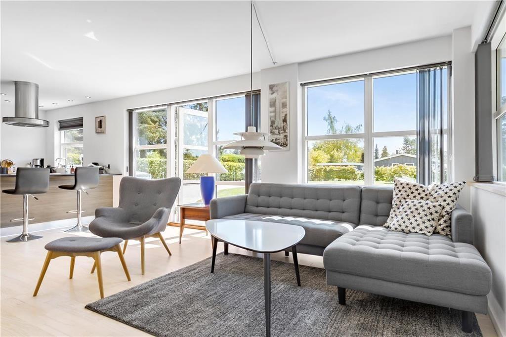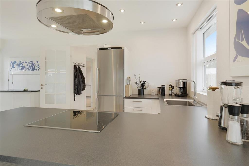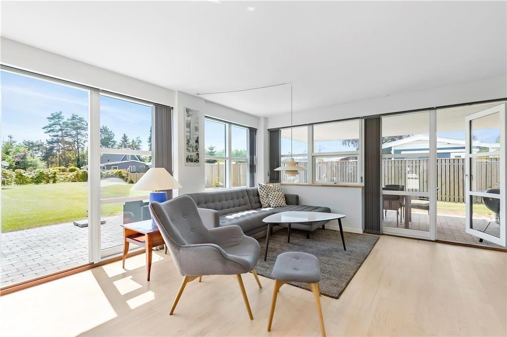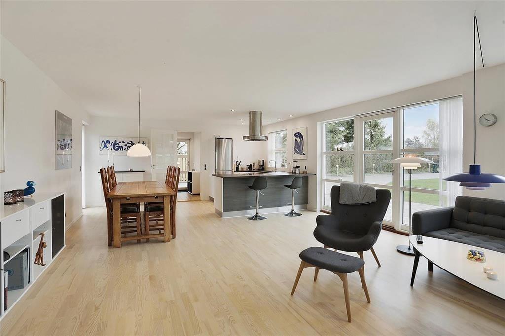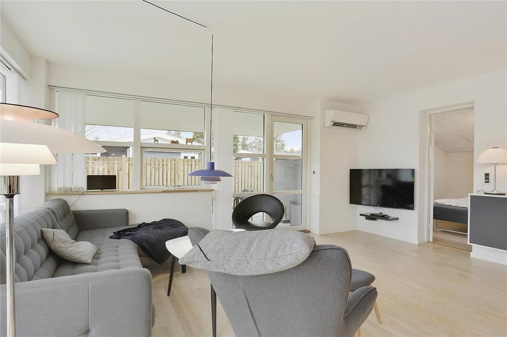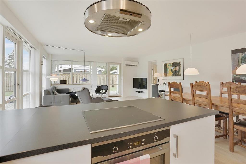 Wenn Sie vom Eingang aus zu Fuß weitergehen, erreichen Sie die schöne offene Küche, die alles enthält, was Sie für den Urlaub benötigen. In der Küche befindet sich der große Esstisch, und weiter durch den Raum gelangen Sie im Wohnzimmerabteilung, wo Fernseher, Sofa und Sessel sich befinden. Die gesamte Wohnküche ist von großen und köstlichen Fenstern umgegeben, die immer einen schönen Lichteffekt gibt und ein guten blick zum garten haben. Vom Wohnzimmer aus haben Sie Zugang zum letzten Schlafzimmer , das auch mit ein Doppelbett ausgestattet ist.