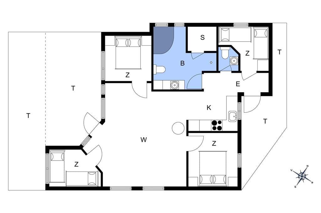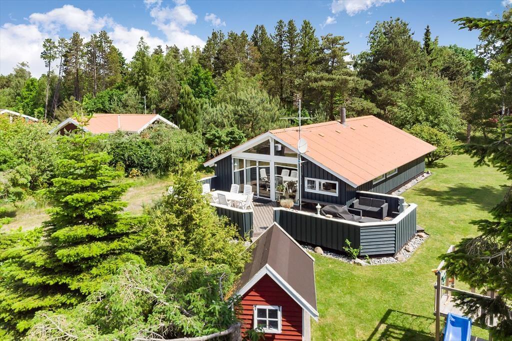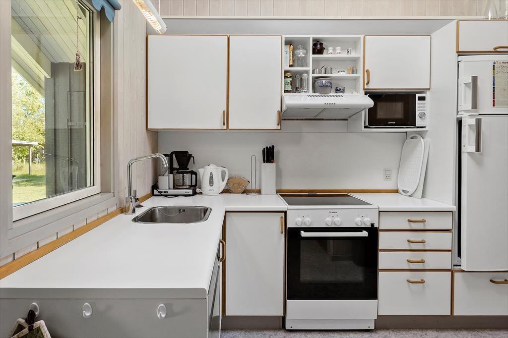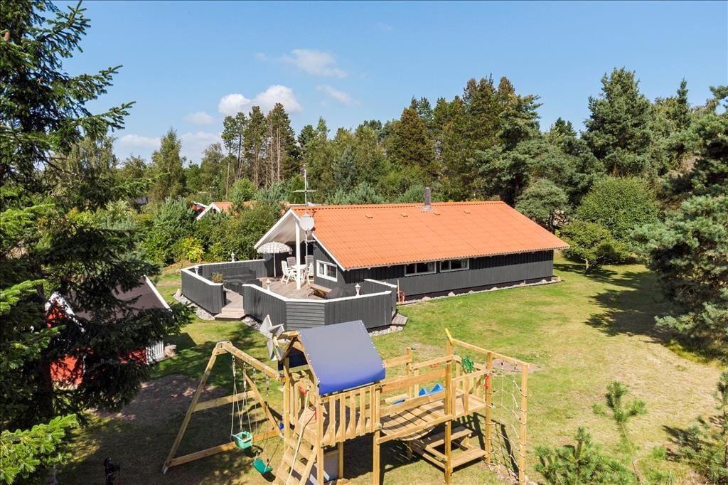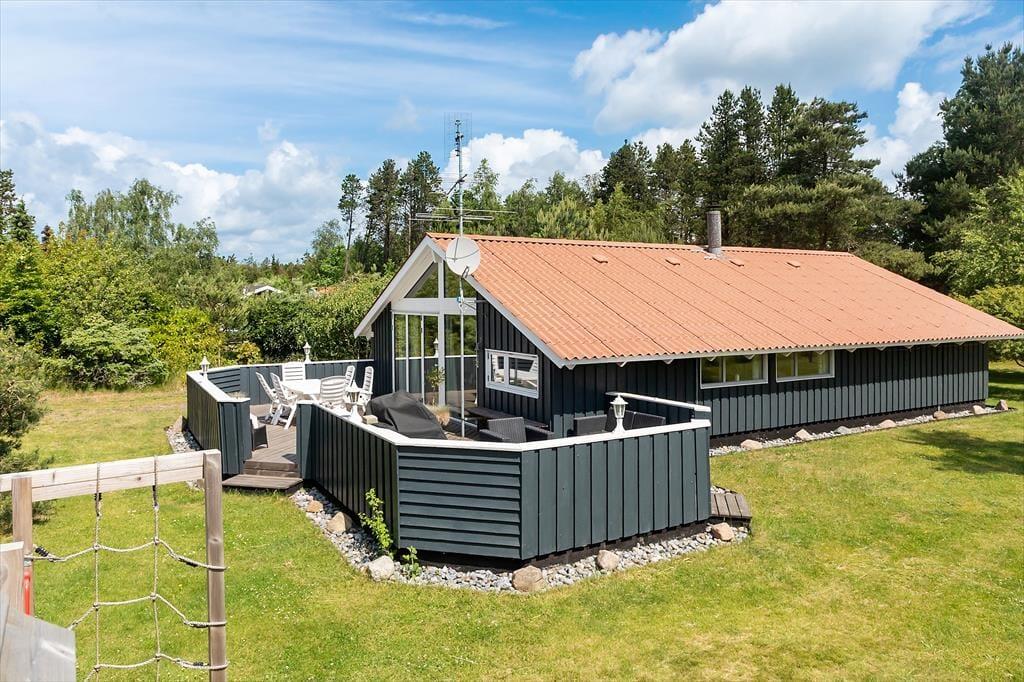 Schön und helle Einrichtung im ganzen Haus. Sie kommen im Haus rein zur einer kleinen Eingangshalle, mit Zugang zu einem Schlafzimmer und das Badezimmer und Gästetoilette. Weiter geht es zur Küche, in der sich alles befindet, was für den Urlaub benötigt wird, und dann weiter in das große und gut eingerichtetes Wohnzimmer das in hellem und einladendem Zustand erscheint. Vom Wohnzimmer aus haben Sie Zugang zu den letzten drei Schlafzimmern des Hauses sowie zur schönen Holzterrasse mit Gartenmöbeln und einer kleinen überdeckte Terrasse.