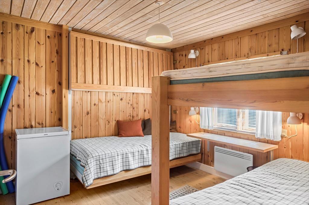 Das Ferienhaus besteht aus: Vorraum, 2 gute Schlafzimmer - eines mit Doppelbett und das andere Zimmer mit 2 Etagenbetten, 1 Badezimmer mit Dusche und WC, Wohnküche mit Essecke, Wohnzimmer mit Sofaecke und Ausgang vom Wohnzimmer zu einer schönen teilweise überdachten Terrasse.