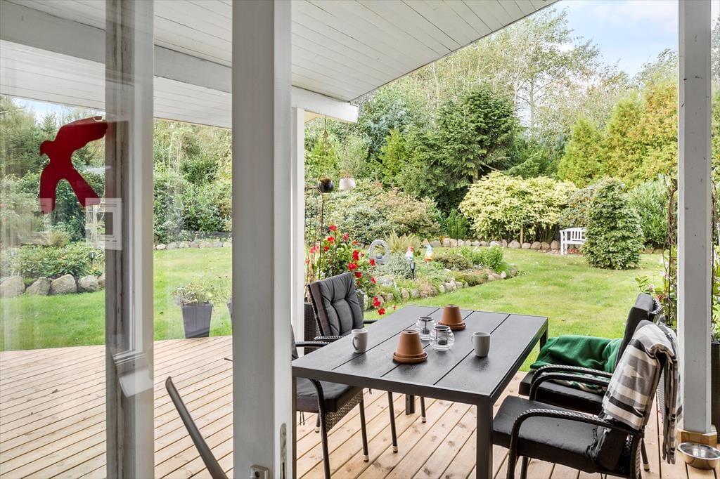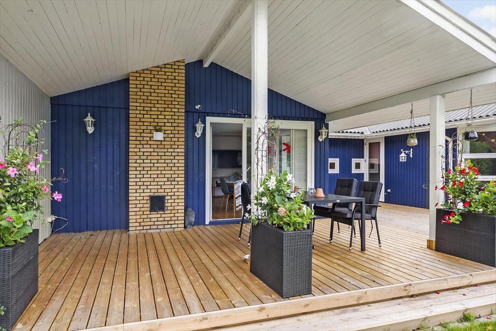 Die schöne Holzterrasse ist perfekt für Spaß und Treffen mit Familie und Freunden.