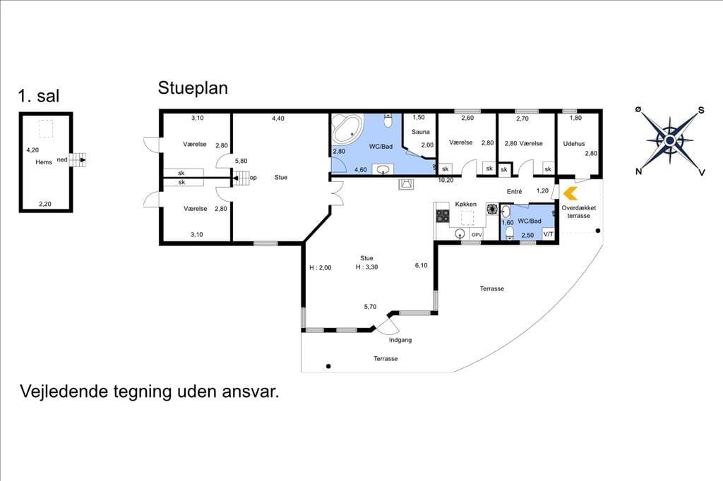 Gelegen in einem guten Ferienhausgebiet, in der Nähe des Marktplatzes, der Einkaufsmöglichkeiten und nicht zuletzt Dänemarks bestem Strand.
