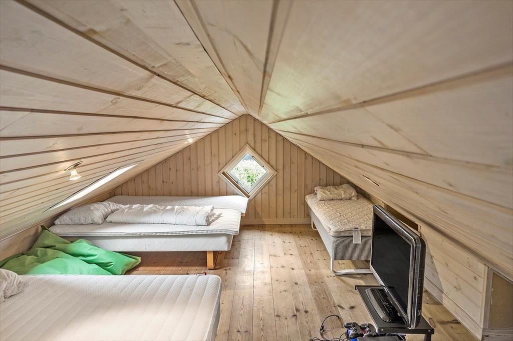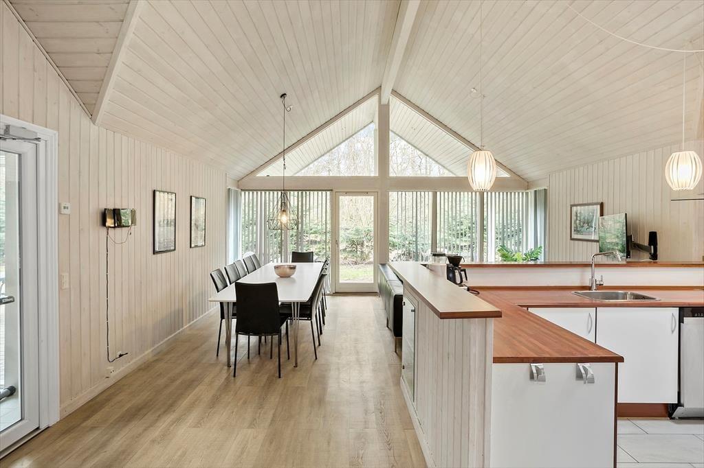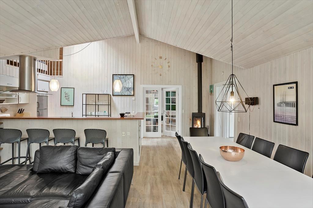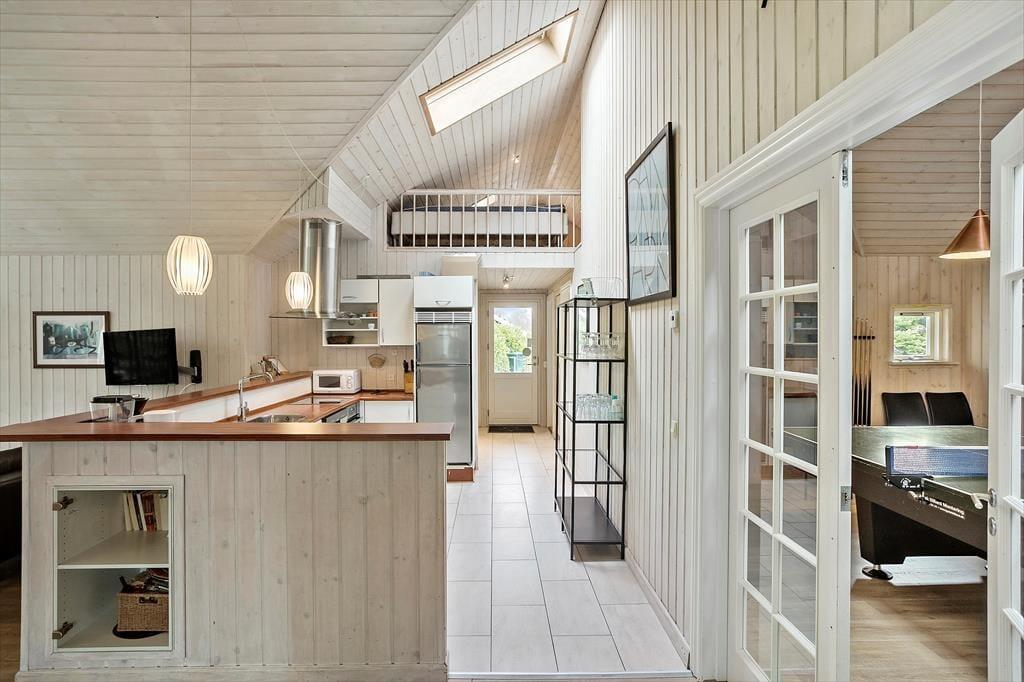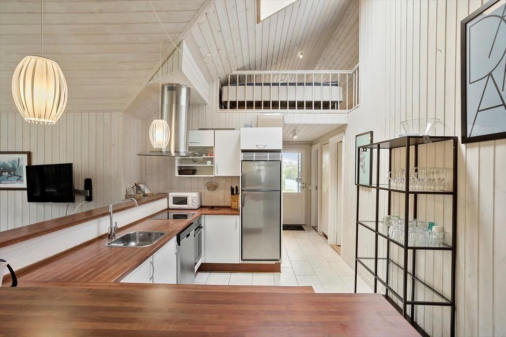 Das Haus verfügt über 14 Schlafplätze, aufgeteilt auf 4 Schlafzimmer und 2 Lofts. Außerdem gibt es eine schöne Küche mit allem, was man für einen schönen Urlaub braucht. Es gibt einen Backofen, ein Kochfeld, eine Mikrowelle, eine Kaffeemaschine, einen geräumigen Gefrierschrank, einen Kühlschrank und eine Spülmaschine.