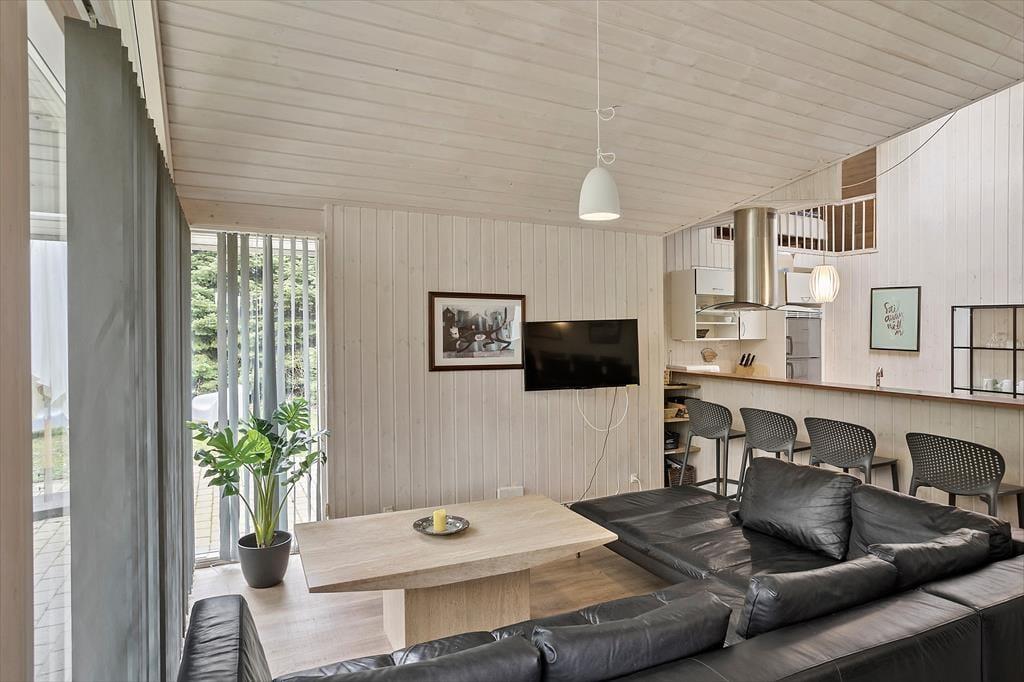 Von der Küche aus gelangen Sie in ein schönes Wohnzimmer mit Holzofen, vielen Sitzgelegenheiten und reichlich Gelegenheit, sich abends nach all den Aktivitäten des Tages vor dem Fernseher zu entspannen.