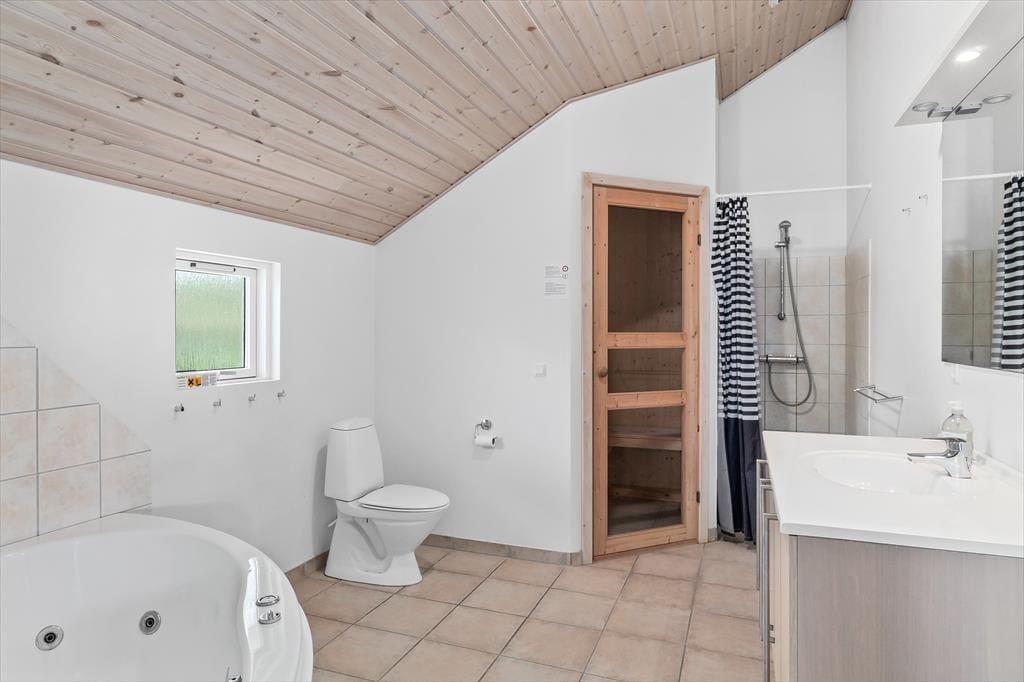 Das Ferienhaus verfügt über: 4 gute Schlafzimmer und 1 Loft mit 2 Matratzen, ein großes Badezimmer mit Spa, Sauna, WC und Dusche, sowie ein Badezimmer mit WC, Dusche, Waschmaschine und Trockner, Wohnküche mit Essecke Sofa Darüber hinaus verfügt das Ferienhaus über einen großen Aktivitätsraum mit Tischtennis und Billardtisch. Sowie Ausgang vom Wohnzimmer auf eine schöne Terrasse.