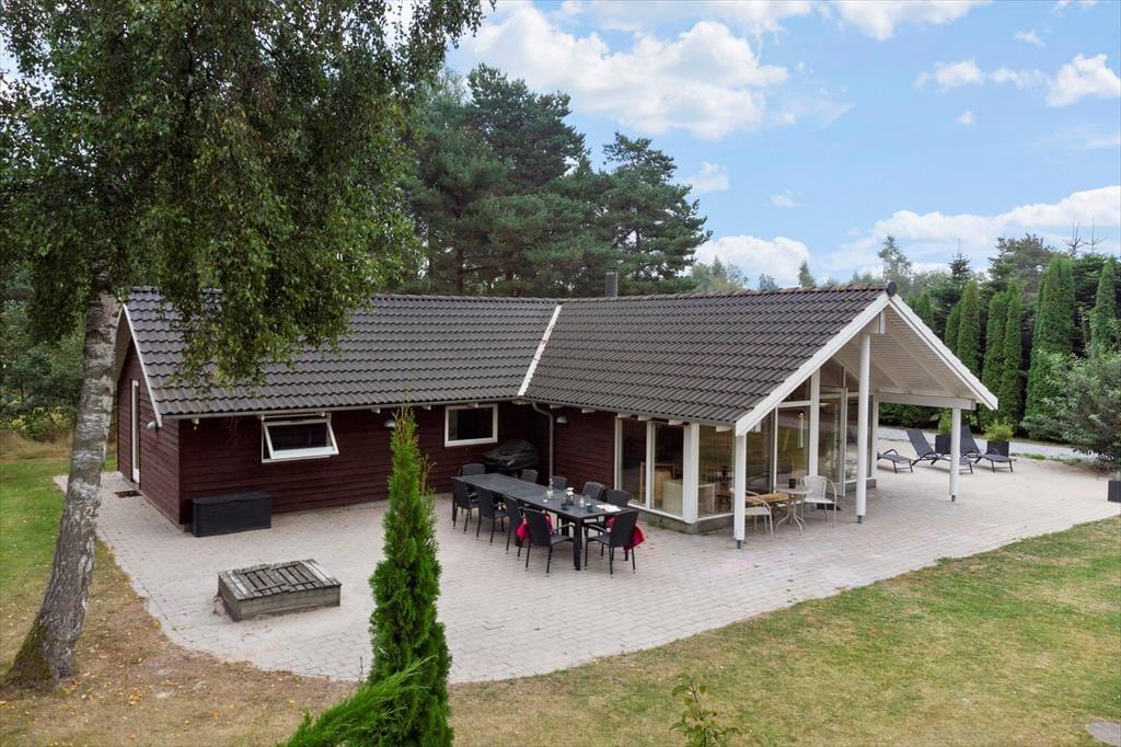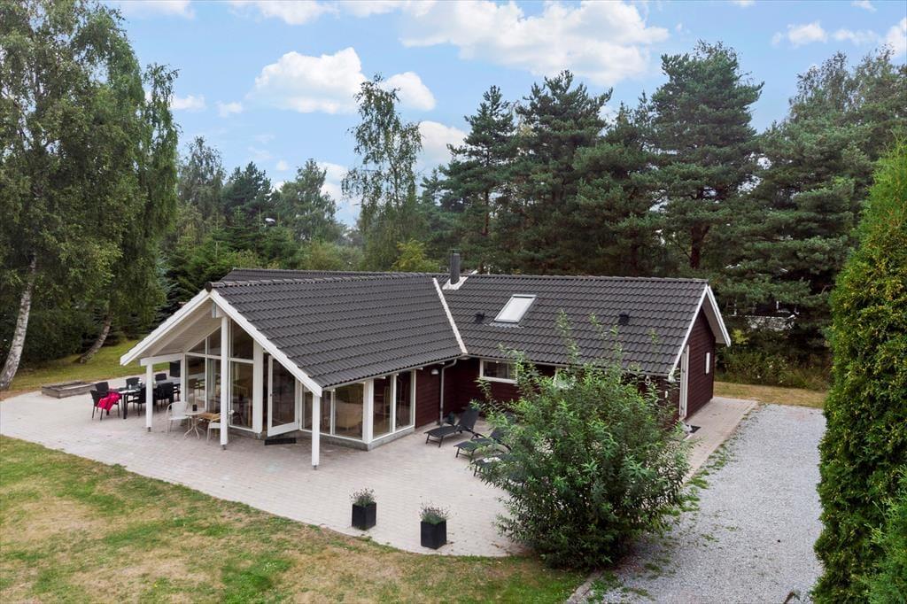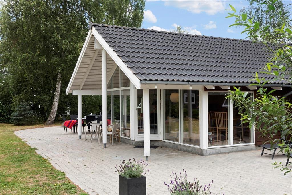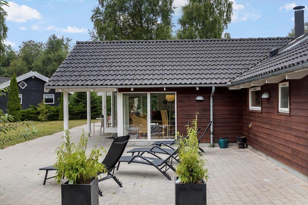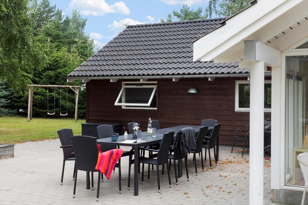 Das Ferienhaus liegt auf einem 983 qm großen Grundstück, auf dem viel Platz für Outdoor-Aktivitäten und Spiel auf der Wiese ist. Darüber hinaus bietet das Ferienhaus eine große Steinterrasse, die sich perfekt für gemütliche Grillabende eignet.