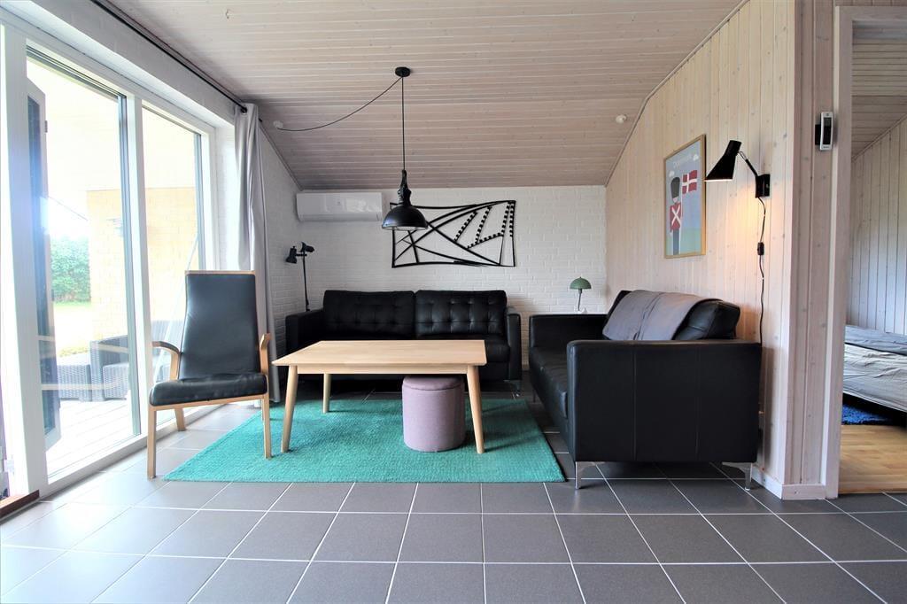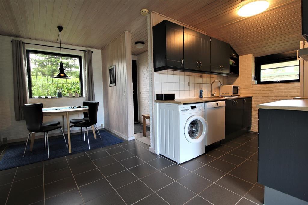 Das Ferienhaus bietet eine Wohnküche mit Zugang zur überdachten Terrasse. Darüber hinaus gibt es ein Badezimmer mit Toilette und Dusche sowie 3 gute Schlafzimmer mit zwei Einzelbetten bzw. einem Doppelbett.