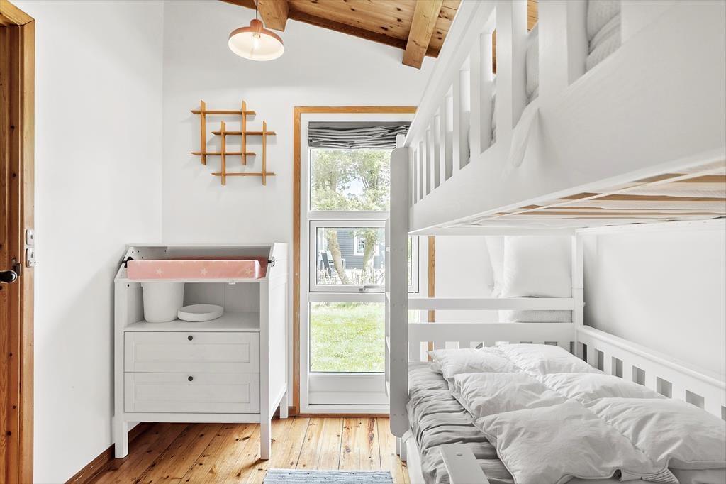 Gemütliches Ferienhaus in einer wunderschönen Gegend auf Marielyst. Das Ferienhaus verfügt über: 2 Schlafzimmer, eines davon mit einem Doppelbett und das andere mit einem Etagenbett. Darüber hinaus bietet das Ferienhaus eine offene Küche mit Essbereich, Sofaecke und Zugang zu einer schönen Terrasse. Im Ferienhaus gibt es 1 Badezimmer mit WC und Dusche, sowie eine Waschmaschine.