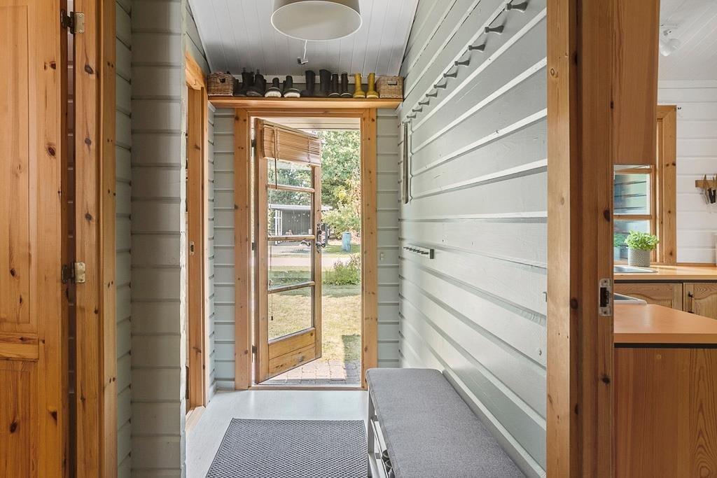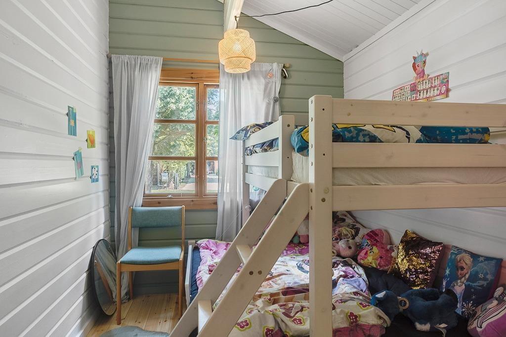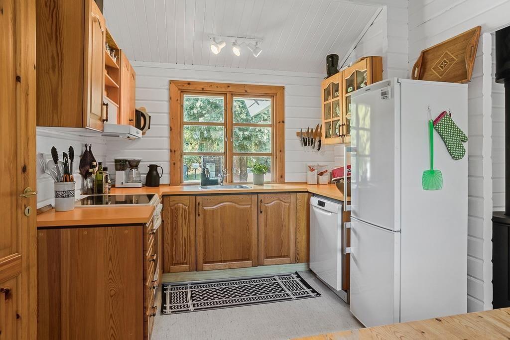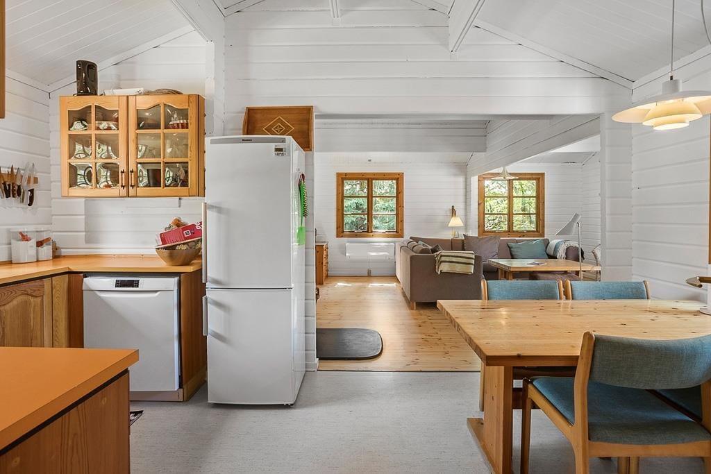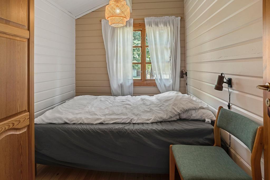 Helles und charmantes Sommerhaus mit 3 Schlafzimmern, 2 davon mit Doppelbett und 1 Zimmer mit Etagenbett. Darüber hinaus gibt es eine schöne offene Küche mit Essbereich, ein Wohnzimmer mit Sofaecke, TV und Holzofen. mit Zugang zur Terrasse, schließlich ein Badezimmer mit WC und Dusche.