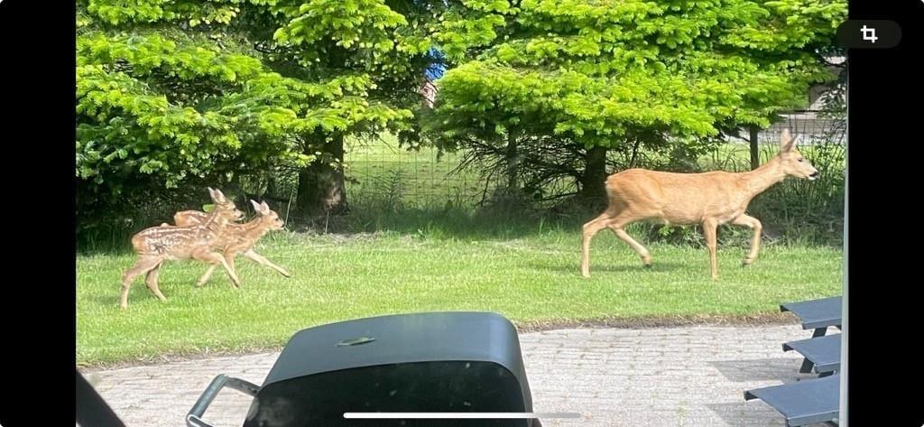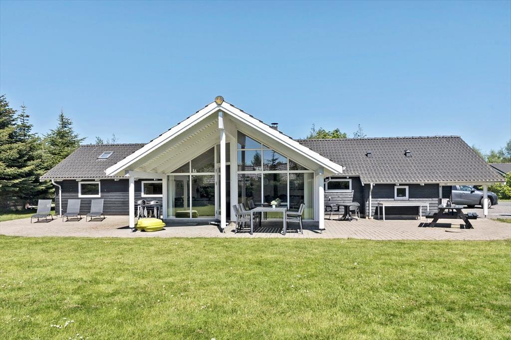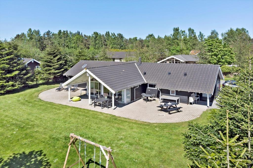 Das Ferienhaus liegt auf einem 1050 m2 großen Grundstück mit viel Platz für Aktivitäten auf der schönen Rasenfläche. Das Ferienhaus verfügt über eine große, schöne Terrasse, die teilweise überdacht ist. Auf der Terrasse gibt es Gartenmöbel, einen Grill und Liegestühle. Im Garten gibt es einen Sandkasten, eine Schaukel, eine Feuerstelle und einen Unterstand, so dass es viele Aktivitäten für Jung und Alt gibt. Auch der Garten ist abgesperrt.