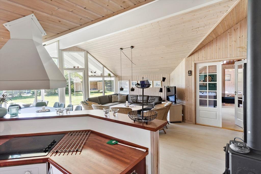 Dieses schöne Ferienhaus besteht aus einer Eingangshalle und 4 guten Schlafzimmern, wobei sich in 2 der Schlafzimmer ein Doppelbett und in den anderen 2 Schlafzimmern 2 Einzelbetten befinden. Das letzte Schlafzimmer ist der Dachboden des Hauses, wo sich 4 Matratzen befinden. Darüber hinaus verfügt das Ferienhaus über 2 Badezimmer, eines davon mit WC, Dusche, Waschmaschine und Trockner und das andere mit WC, Dusche, Whirlpool und Sauna. Darüber hinaus verfügt das Ferienhaus über eine wunderschöne offene Küche mit Zugang zum Essbereich und zum Wohnzimmer. Vom Wohnzimmer aus haben Sie Zugang zur schönen Terrasse und zum Garten des Ferienhauses.