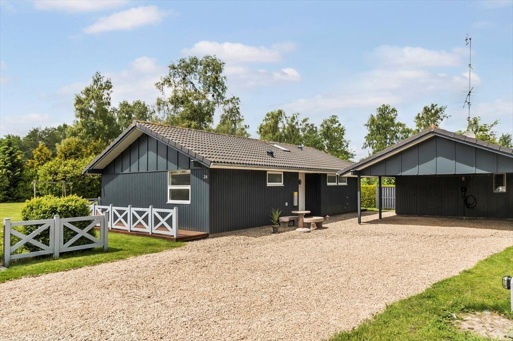 Das Ferienhaus liegt auf einem 1.194 m2 großen Grundstück, das Platz für viele Outdoor-Aktivitäten bietet. Das Ferienhaus verfügt über eine schöne Terrasse mit Gartenmöbeln und Grill, außerdem gibt es in der Einfahrt einen Carport. Im Garten gibt es eine Schaukel und einen Sandkasten für die Kleinen.